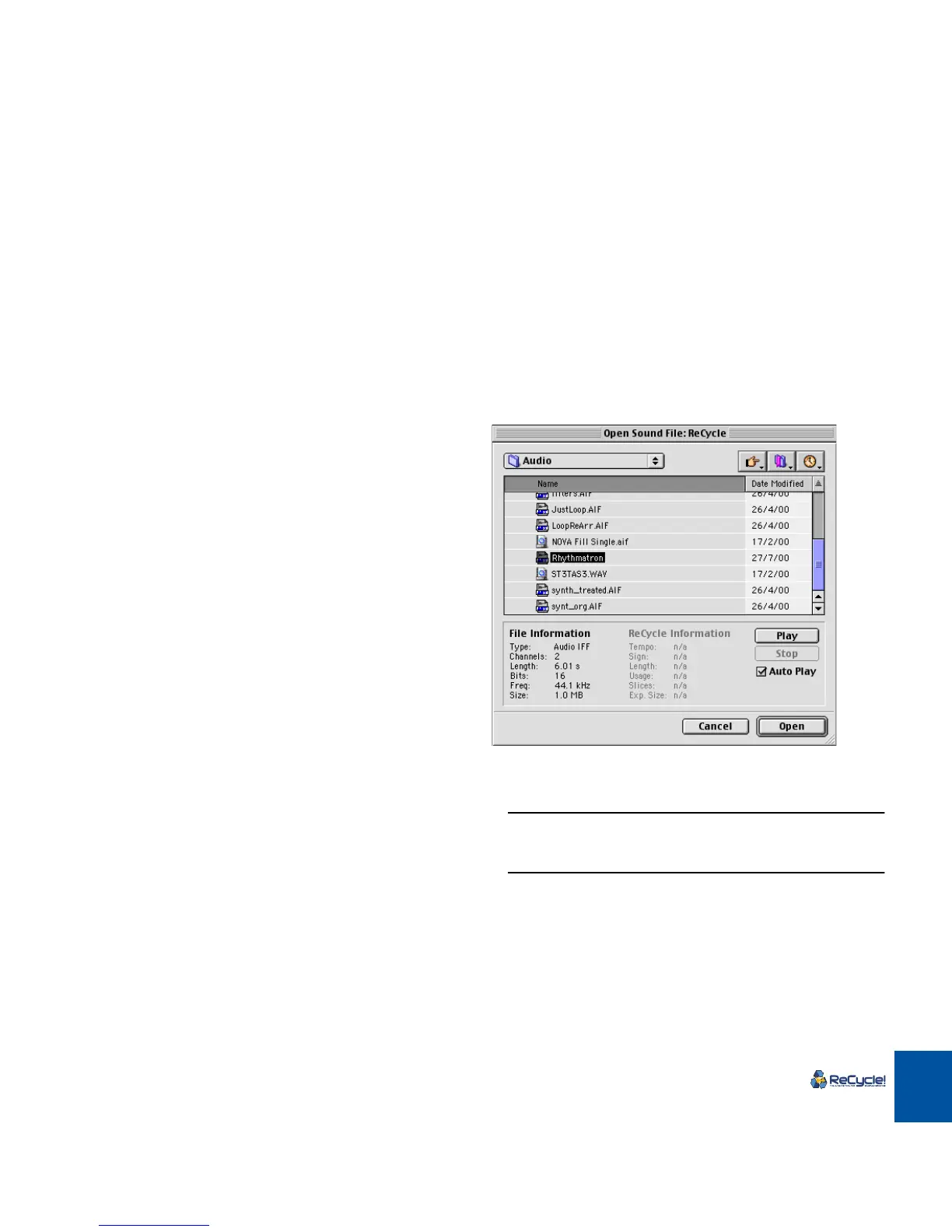 have enough memory for it. To open a five minute stereo file ReCycle has to have