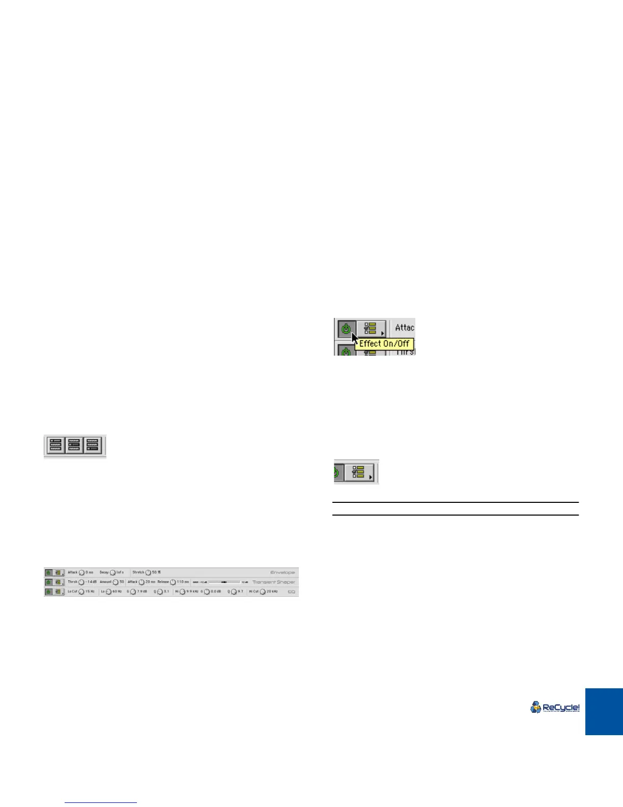 ReCycle features three effect processors, Envelope, Equalizer, and Transient