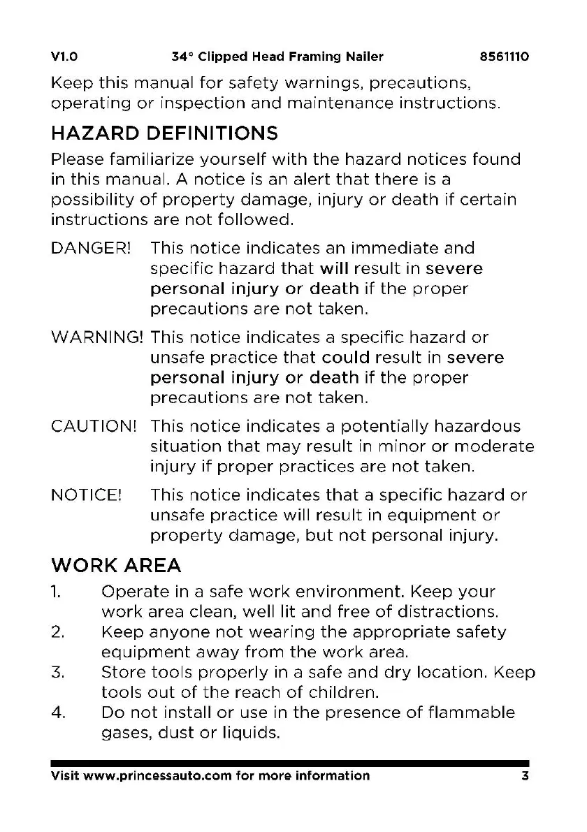 PROPOINT 8561110 - Hazard Definitions; Work Area