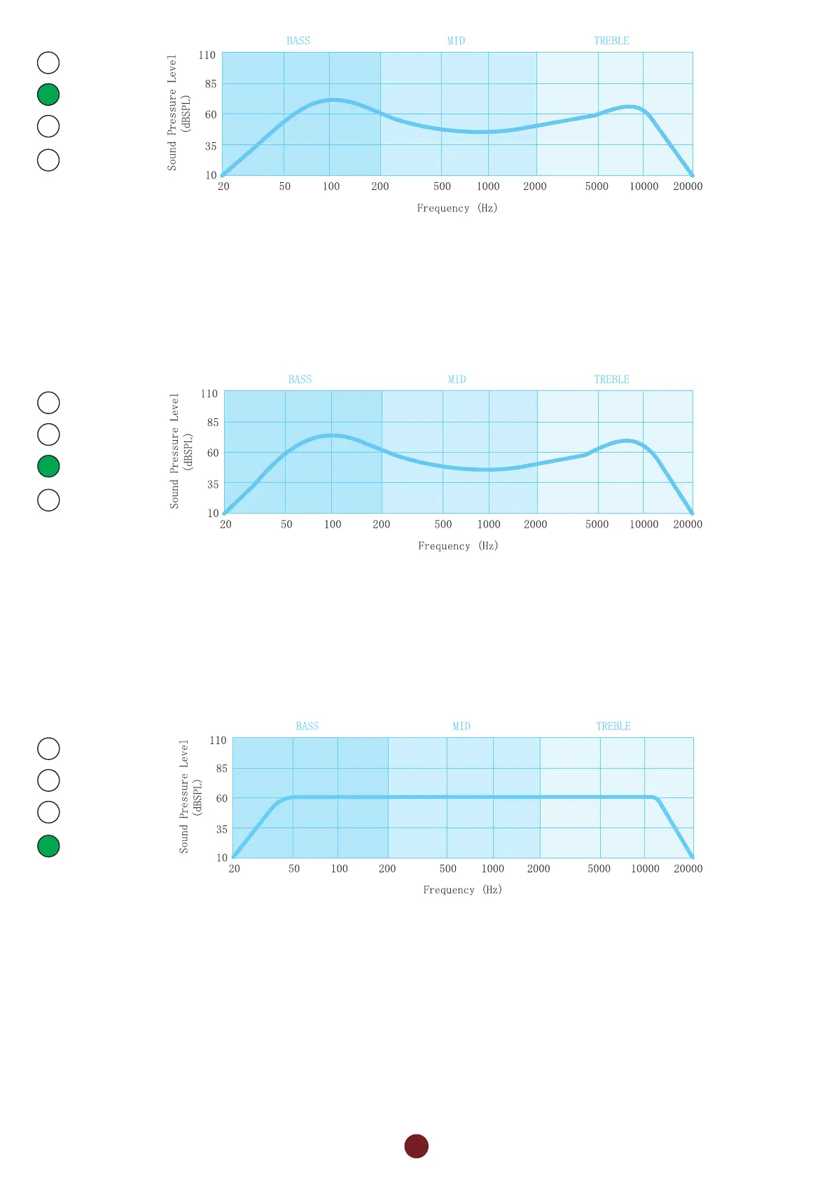Cut through audiences for a pronounced sound, With low and high end boosts and a slight mid cut.