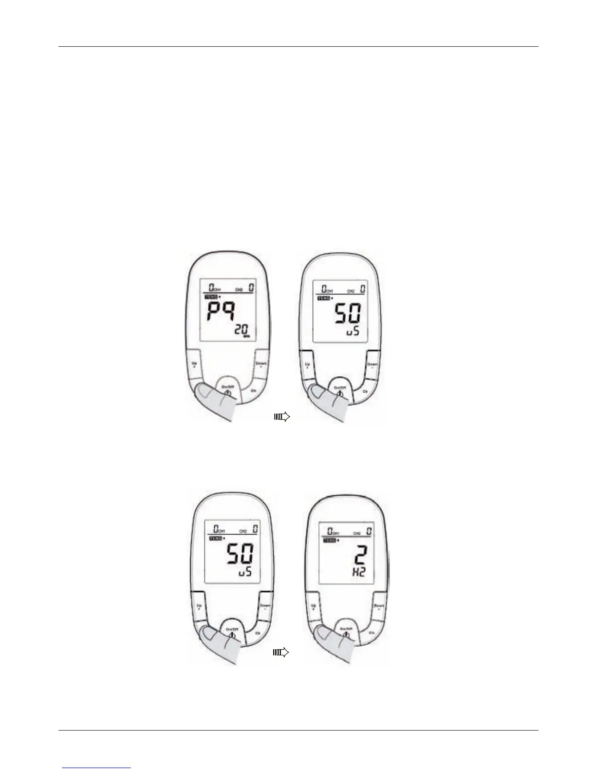 between50~260uSandfrequencyat2~60Hz(forTENS)and7~70Hz(forEMS):