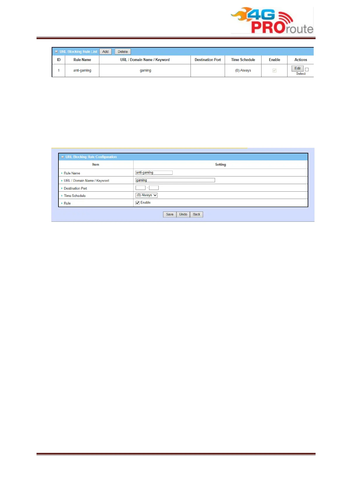 3.2.1.3.3 URL Blocking Rule Configuration
