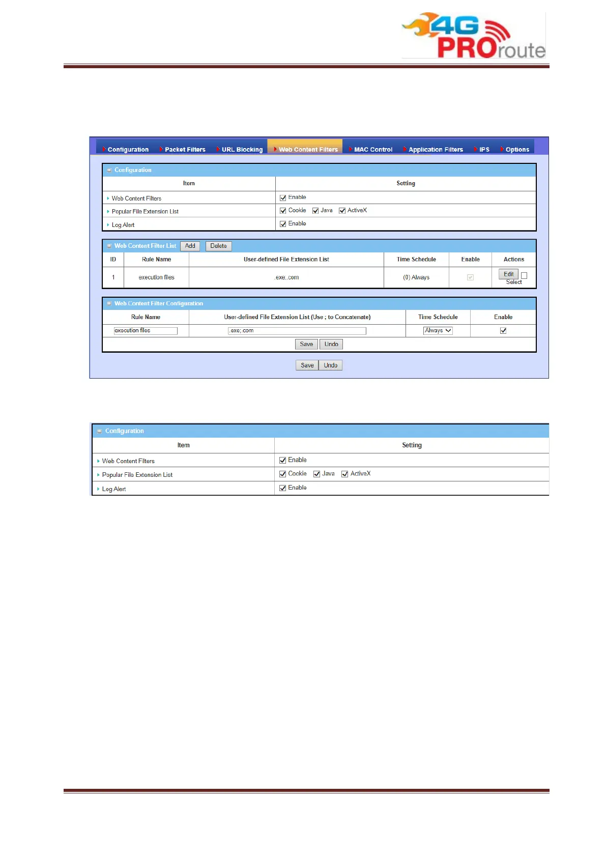 1. Web Content Filters: Check the Enable box if you want to enable Web Content