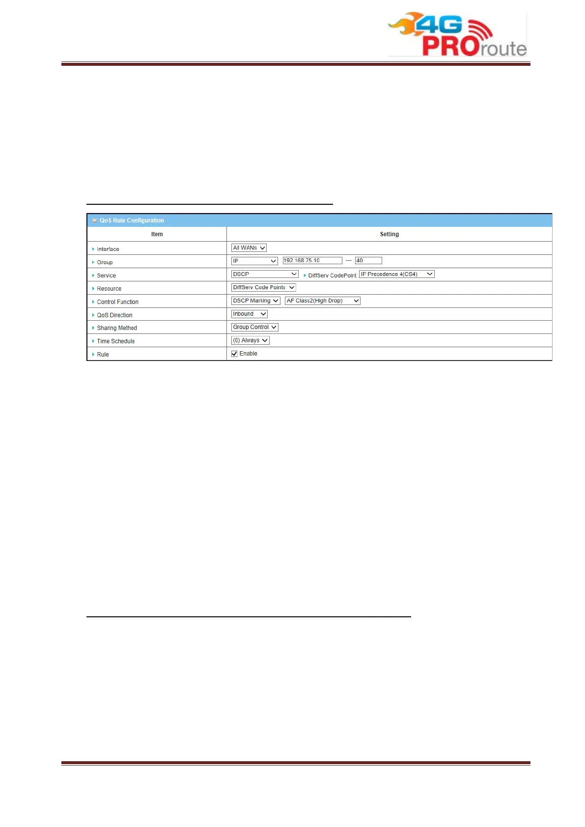 Control Function: Select “DSCP Marking” with “AF Class 2(High Drop)”.