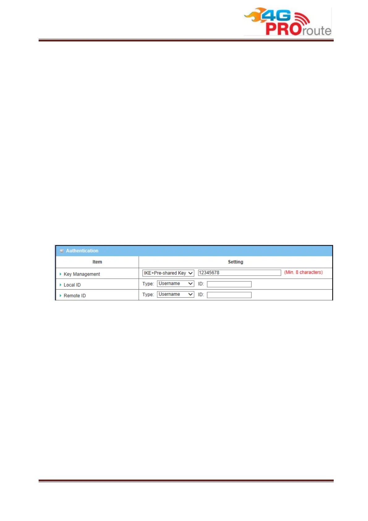 be the same as that of the Remote ID of the remote VPN peer. There are 4 types