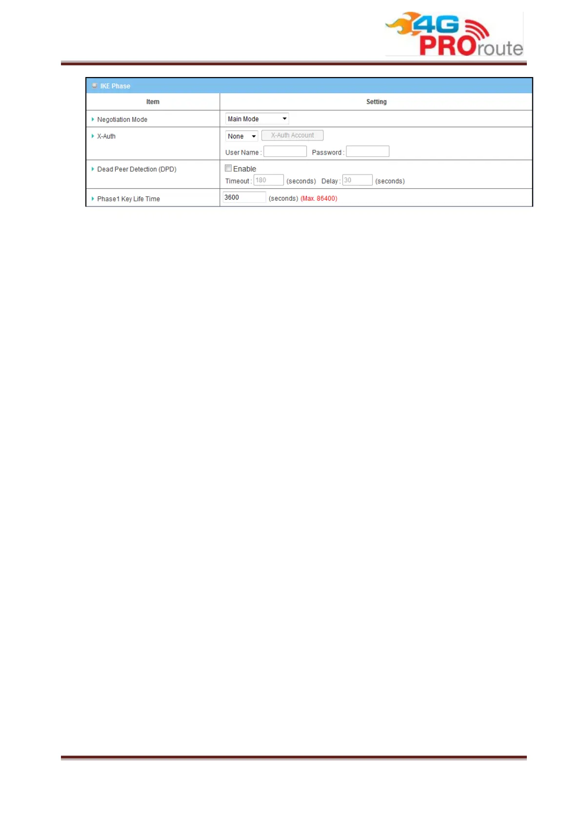 2. X-Auth: For the extended authentication function (XAUTH), the VPN client (or