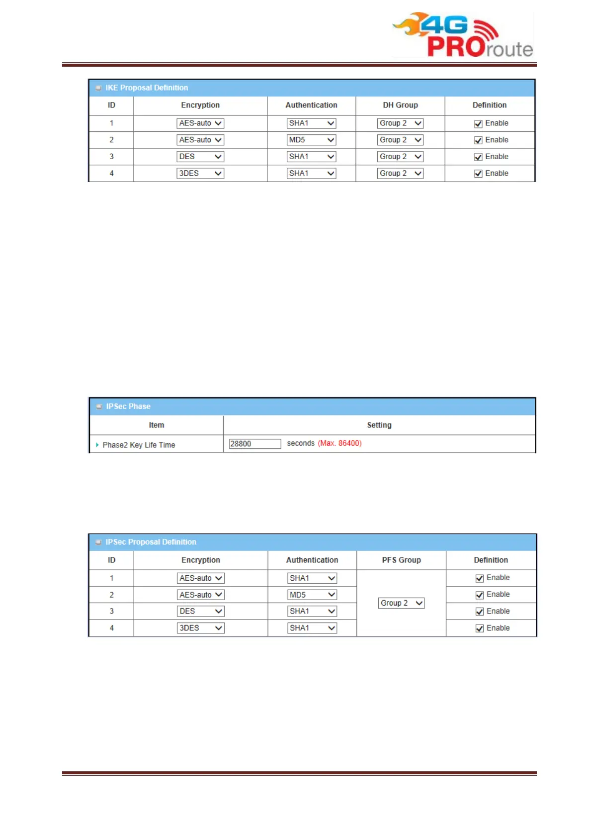 4. Enable: Check this box to enable the IKE Proposal during tunnel establishing.