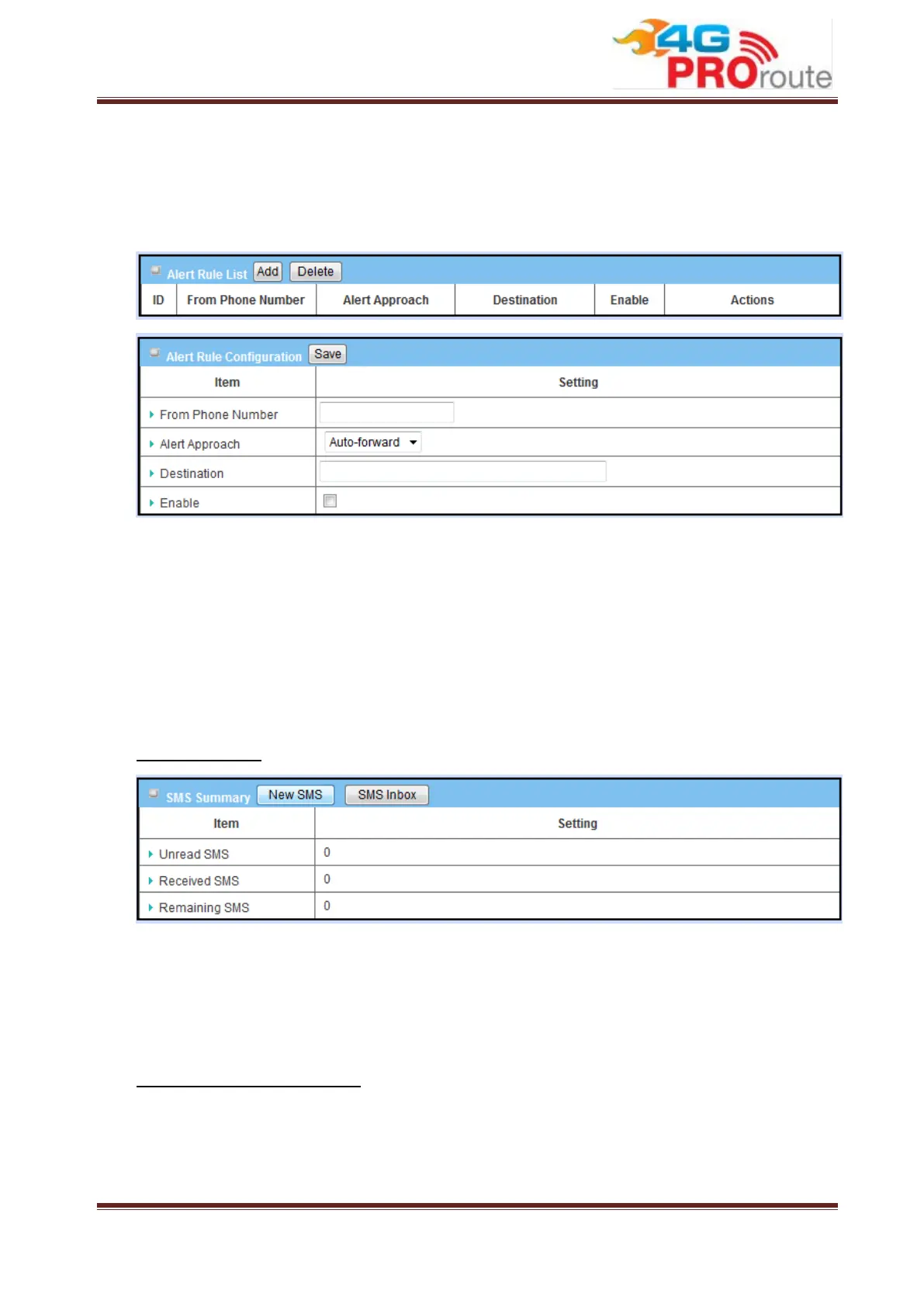 This gateway can forward received SMS message automatically. Press “Add” to add