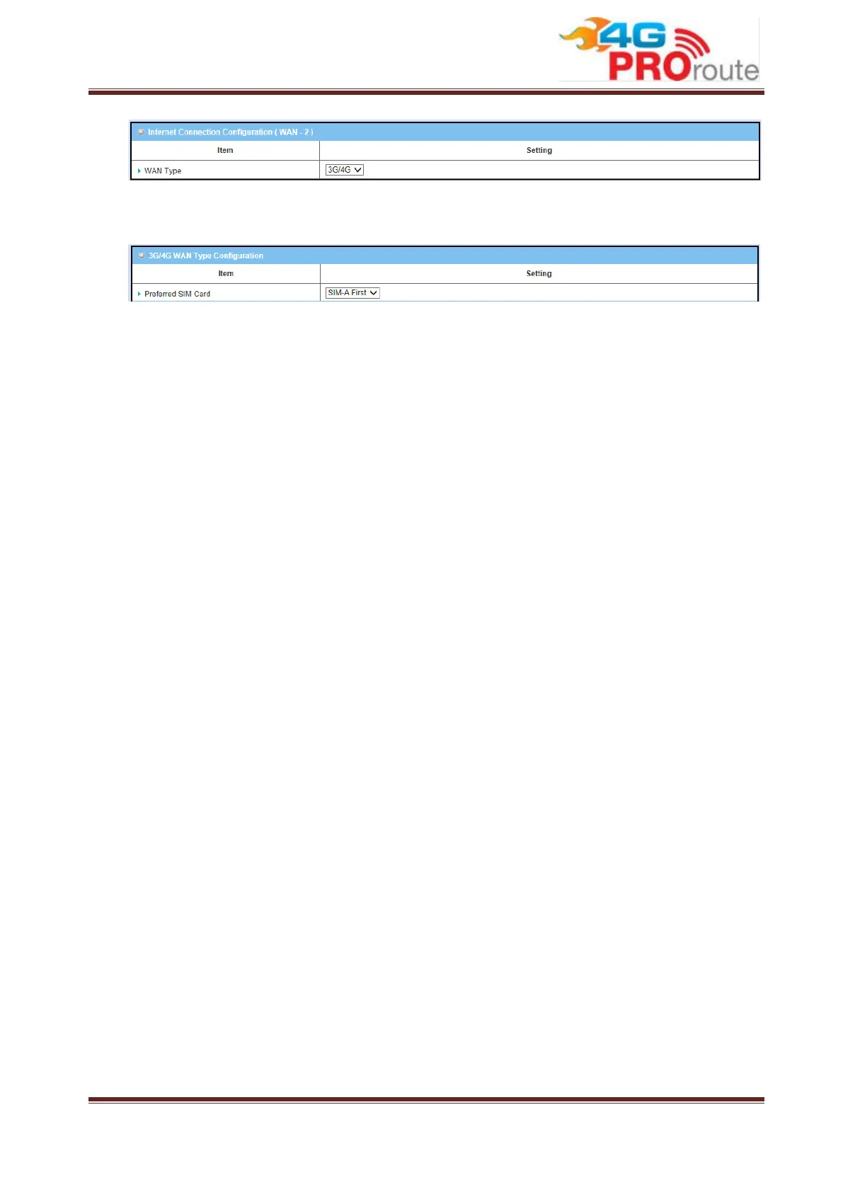 beneath the 3G/4G WAN Type configuration window. However, when you select