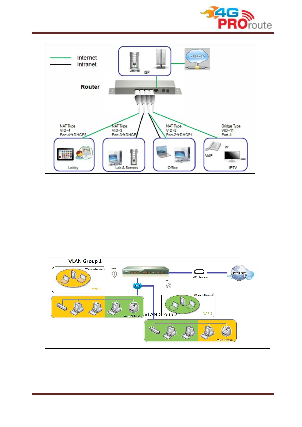 flows with different VLAN IDs from Router device and delivers them in the Intranet.