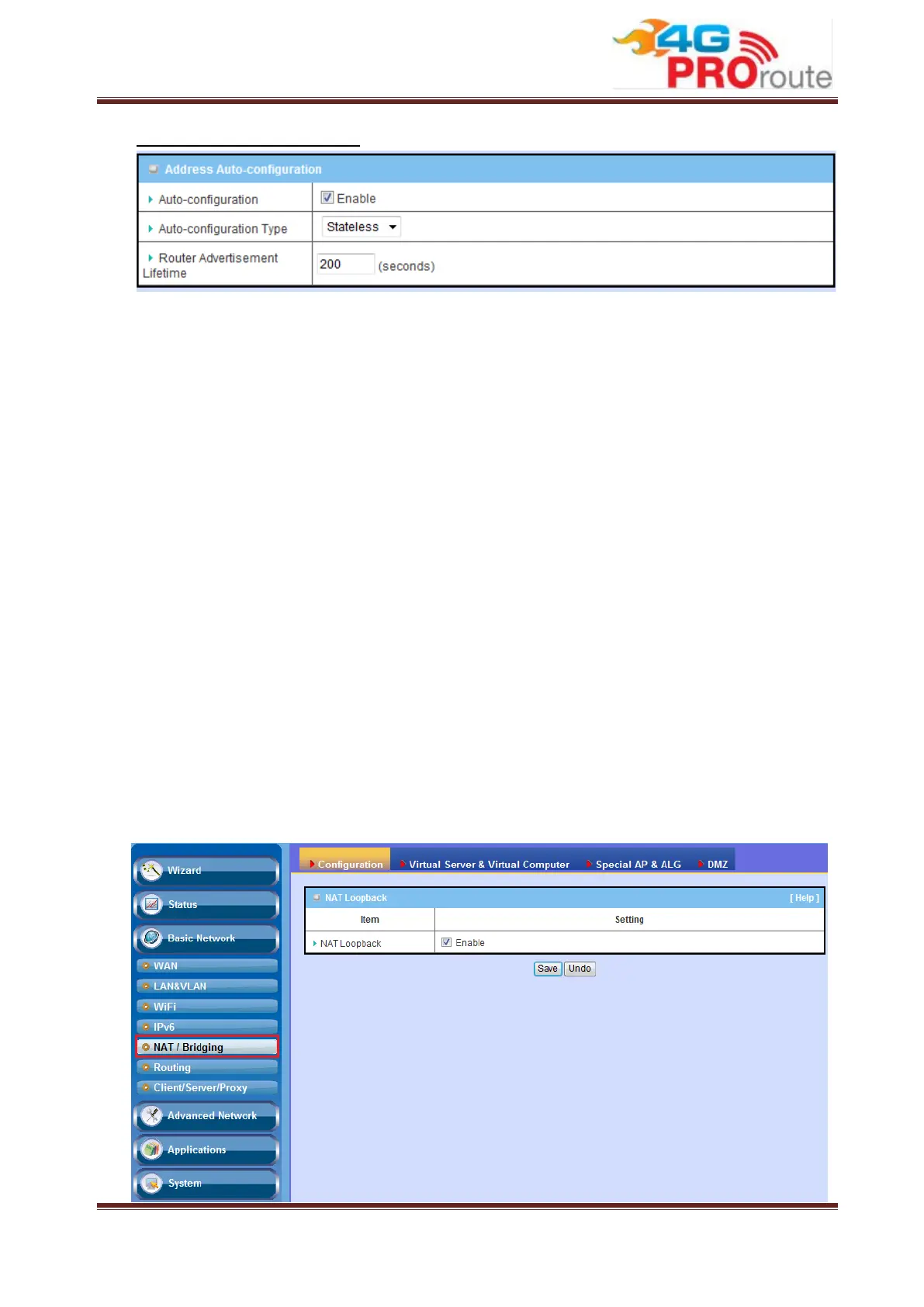 This part includes NAT related settings, such as NAT loopback, Virtual Server, Virtual