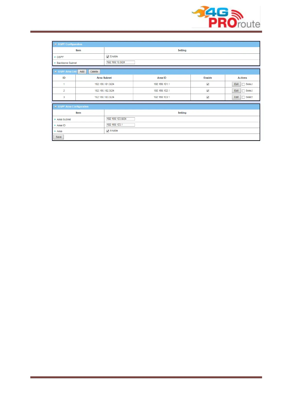 OSPF item and filling the “Backbone Subnet”. You can add up to 8 area subnets