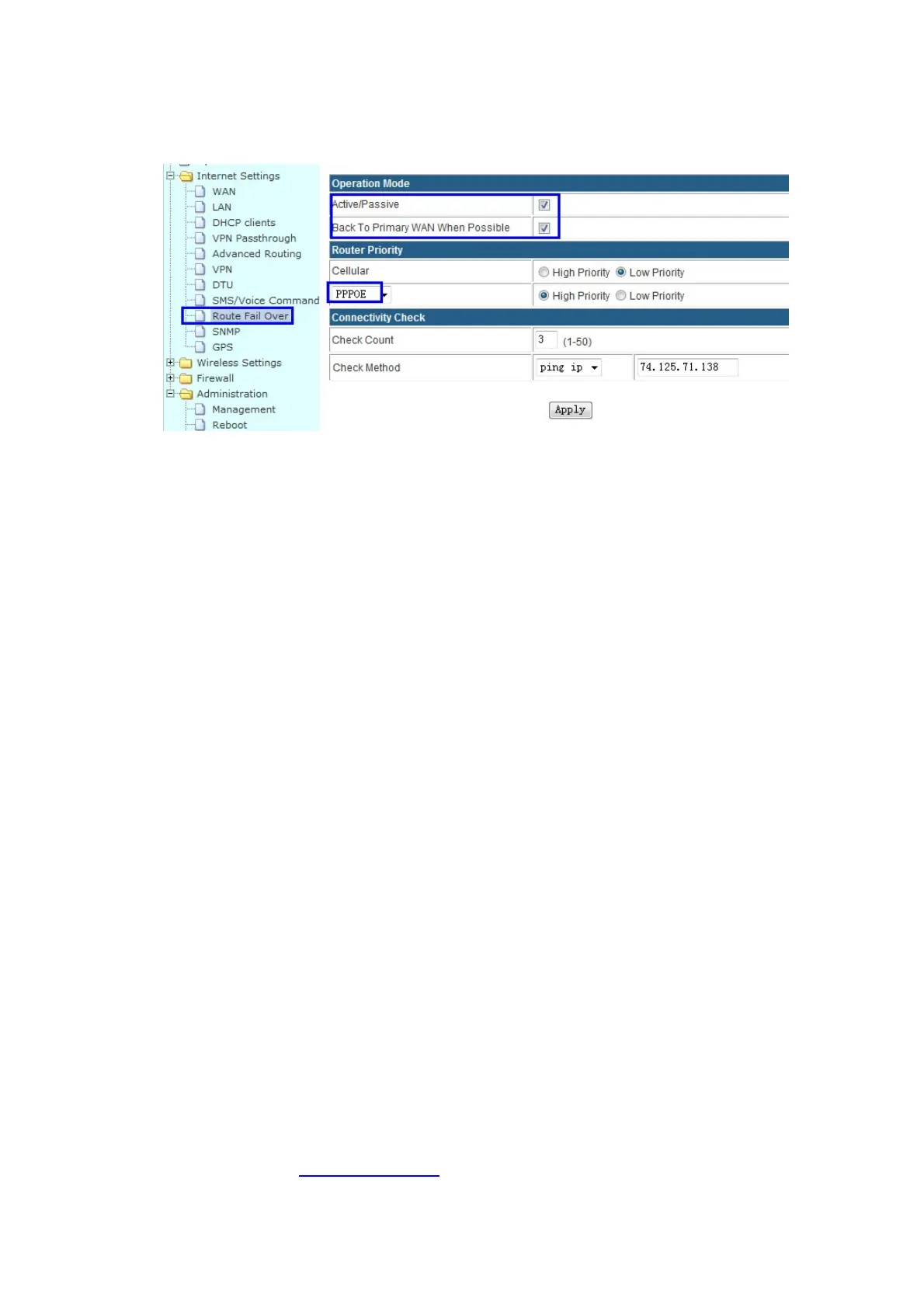 Withtheaboveconfiguration,therouterwilltrytopingIP74.125.71.138andifcannotconnect