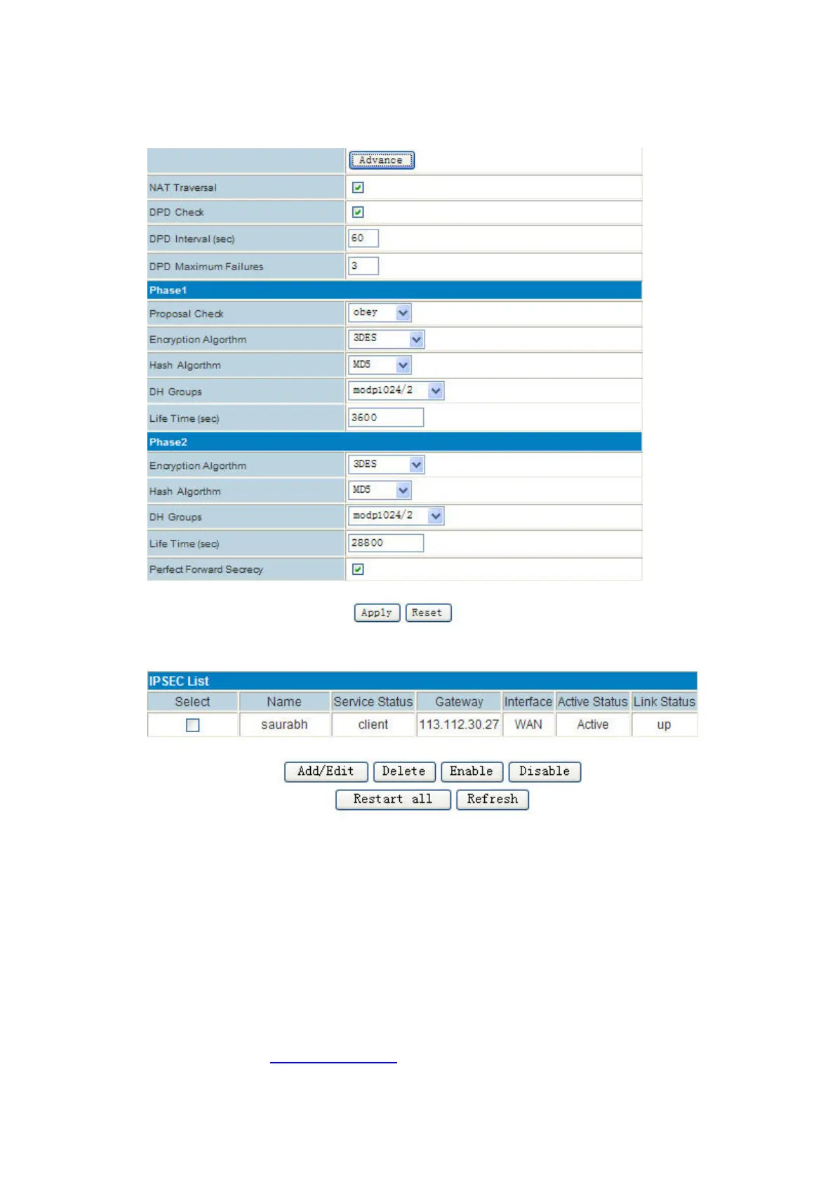 Step3)ActivetheconfiguredIPsecprofile.Selecttheprofile,click“Enable”button,thenitwill