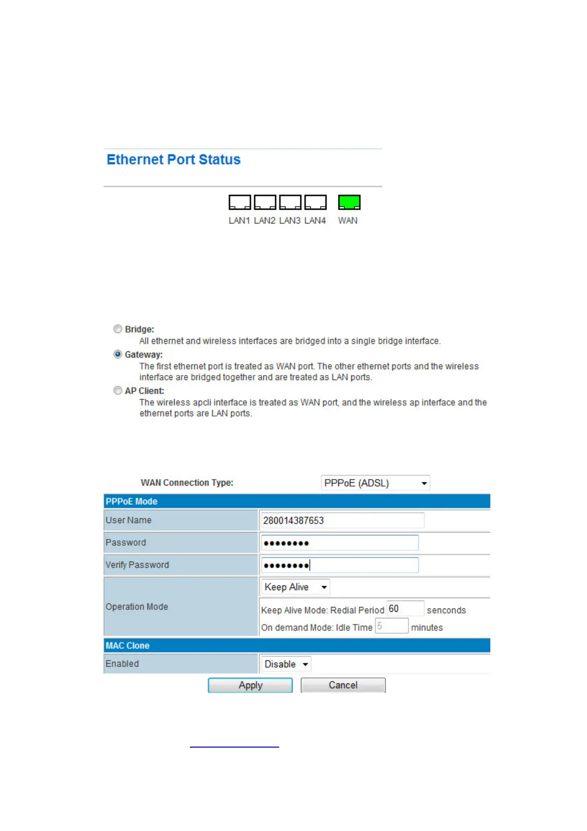 PROROUTEweb–InternetSettings–WAN–WANConnectionType,choose“PPPoE(ADSL)”