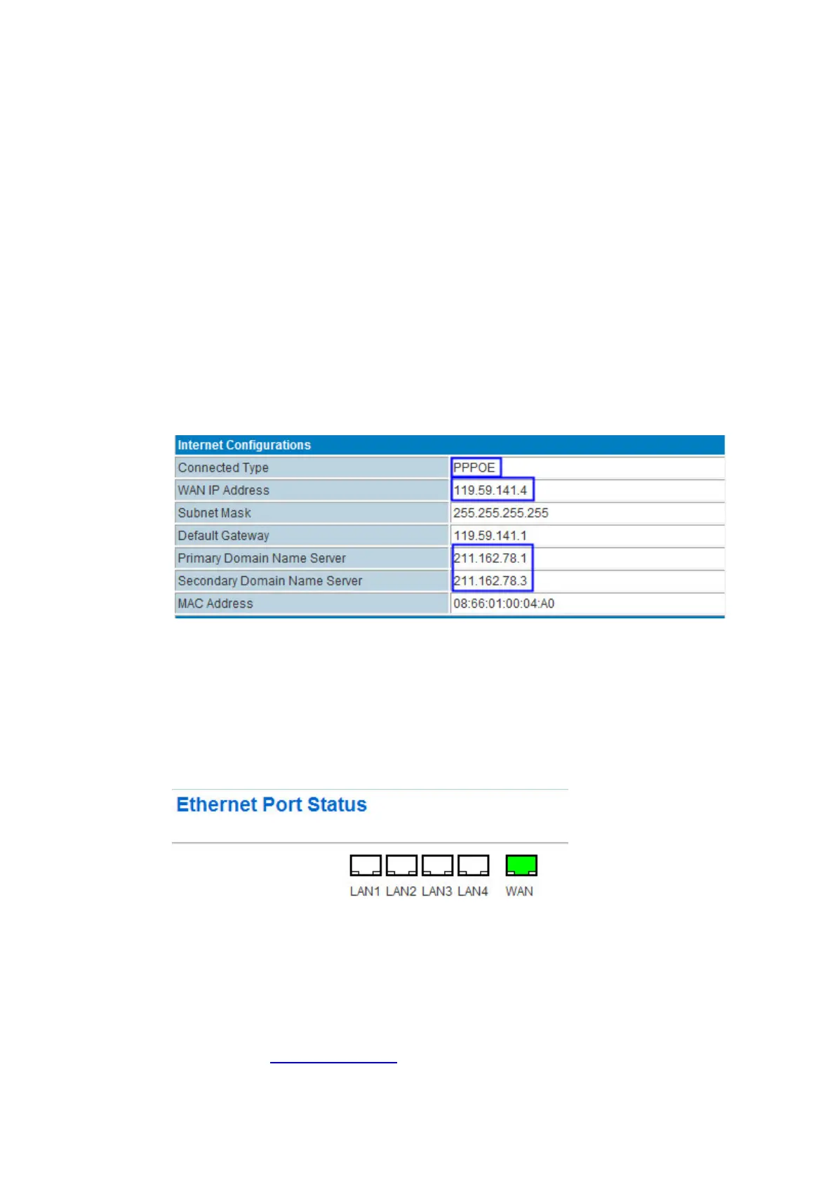 PROROUTEweb–Status,itdisplaytheWANIPoncethePPPoEisonline.