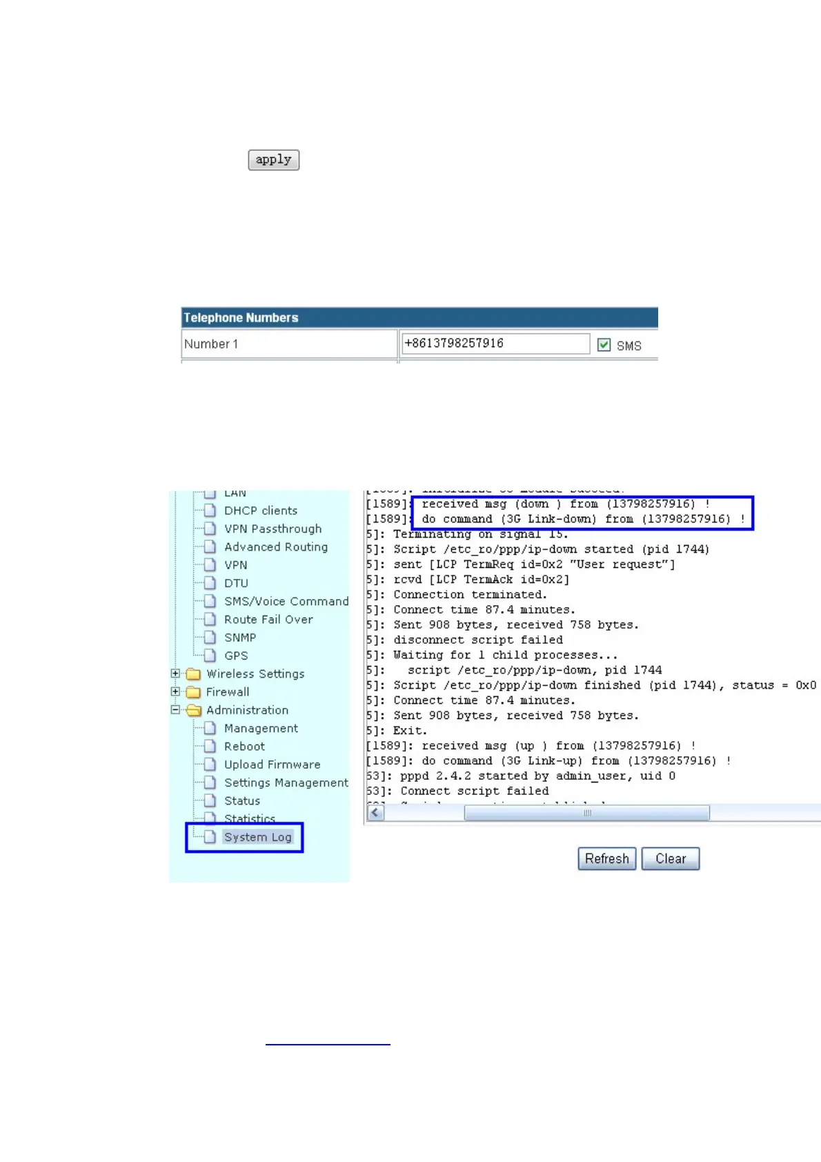 routerwillreceivethe“up”command,anditwillbeonline.AndintheSystemLog,