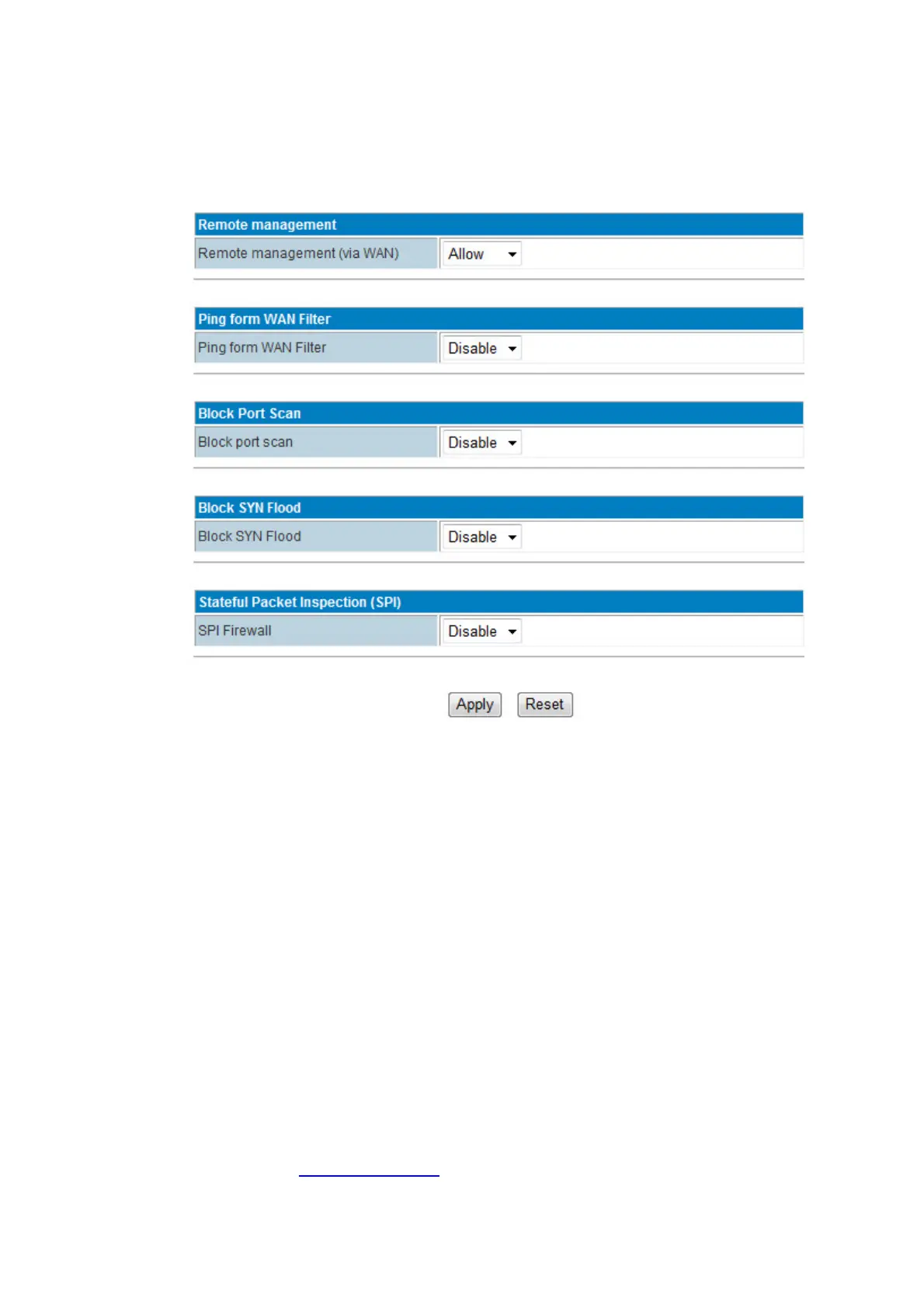 IncludesRemotemanagement,PingfromWANFilter,BlockPortScan,BlockSYNFloodand