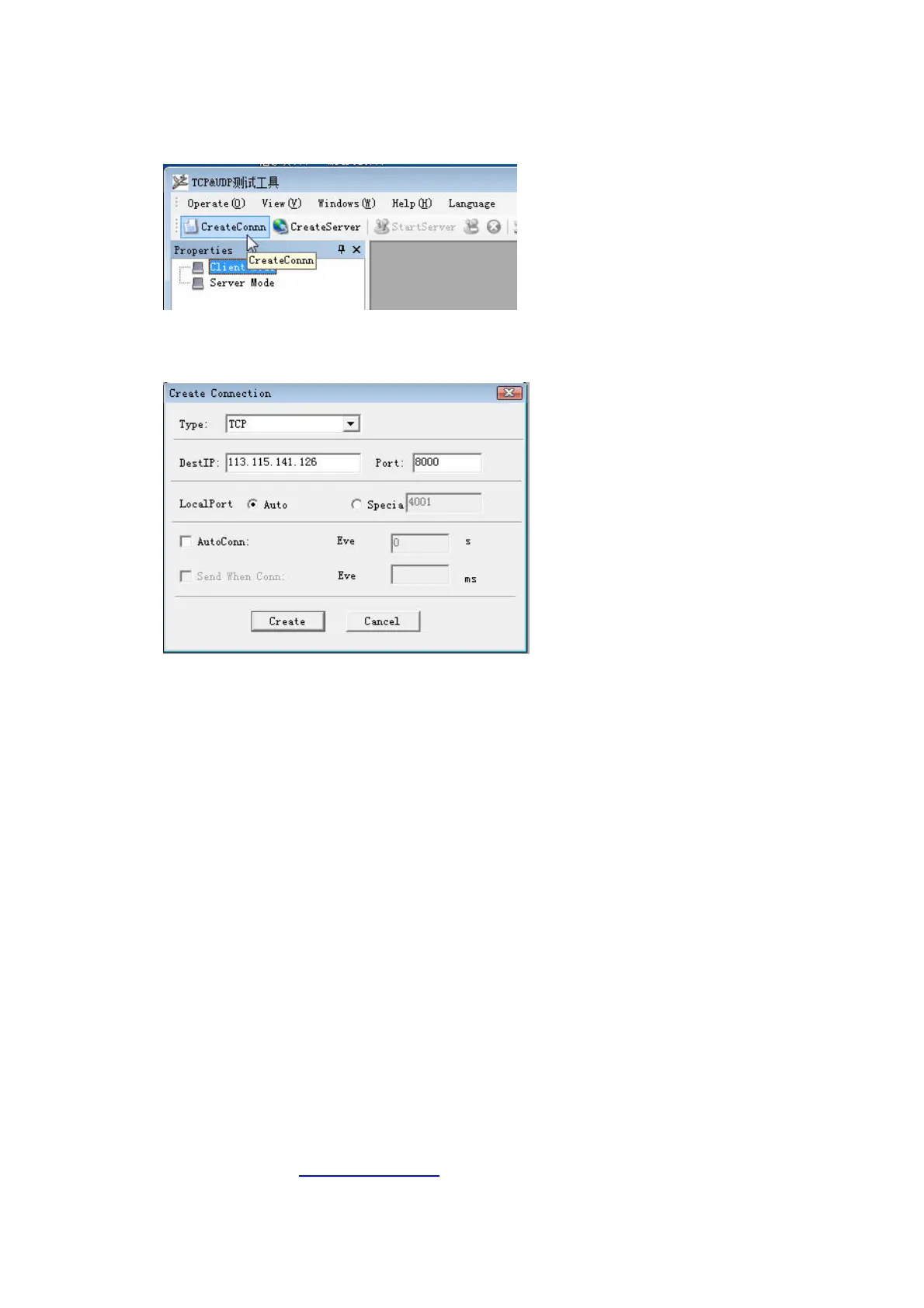 andclickCreateConn,