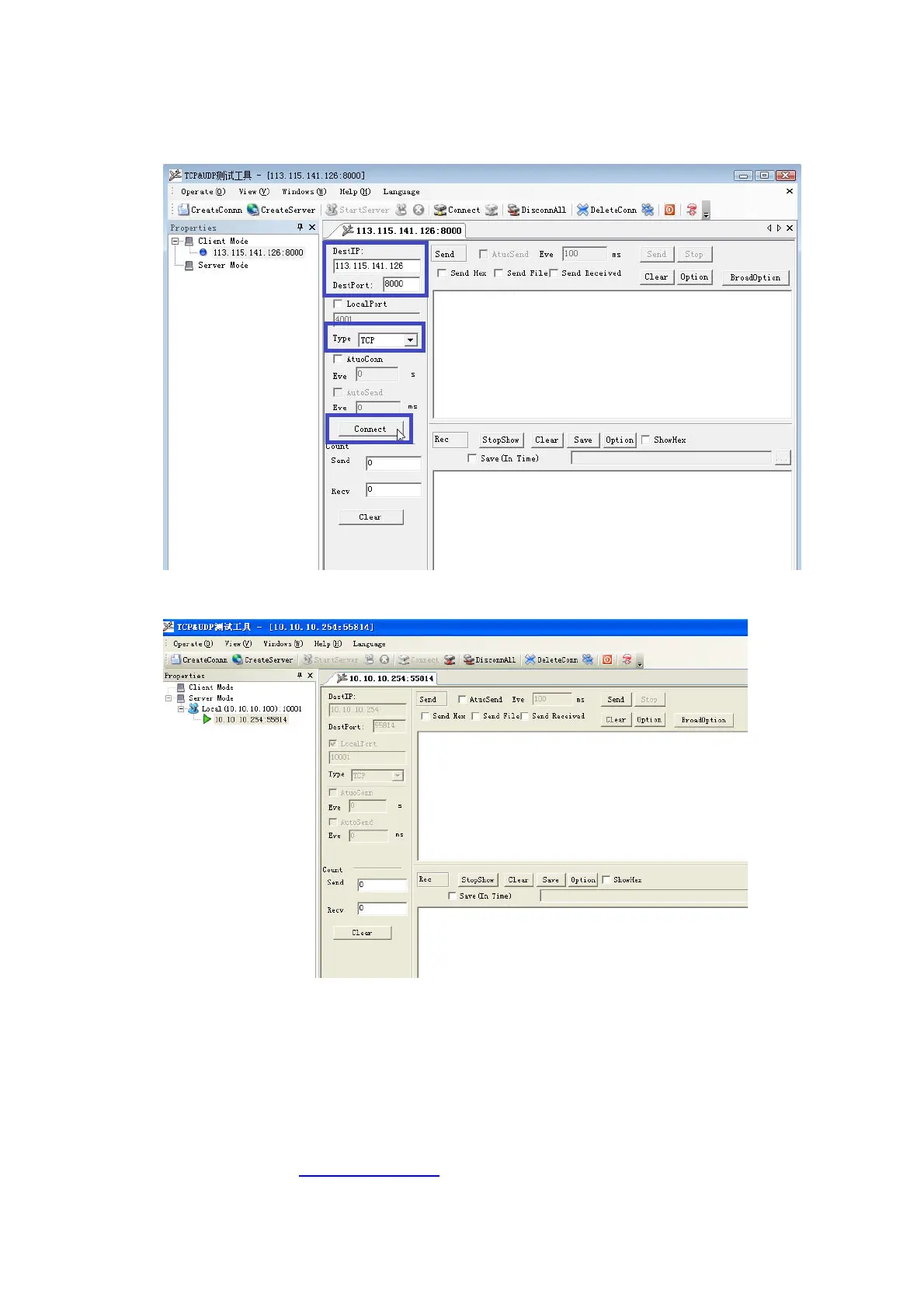 AtclientPC,type“testfromclienttoserver”,and clickSendbutton.