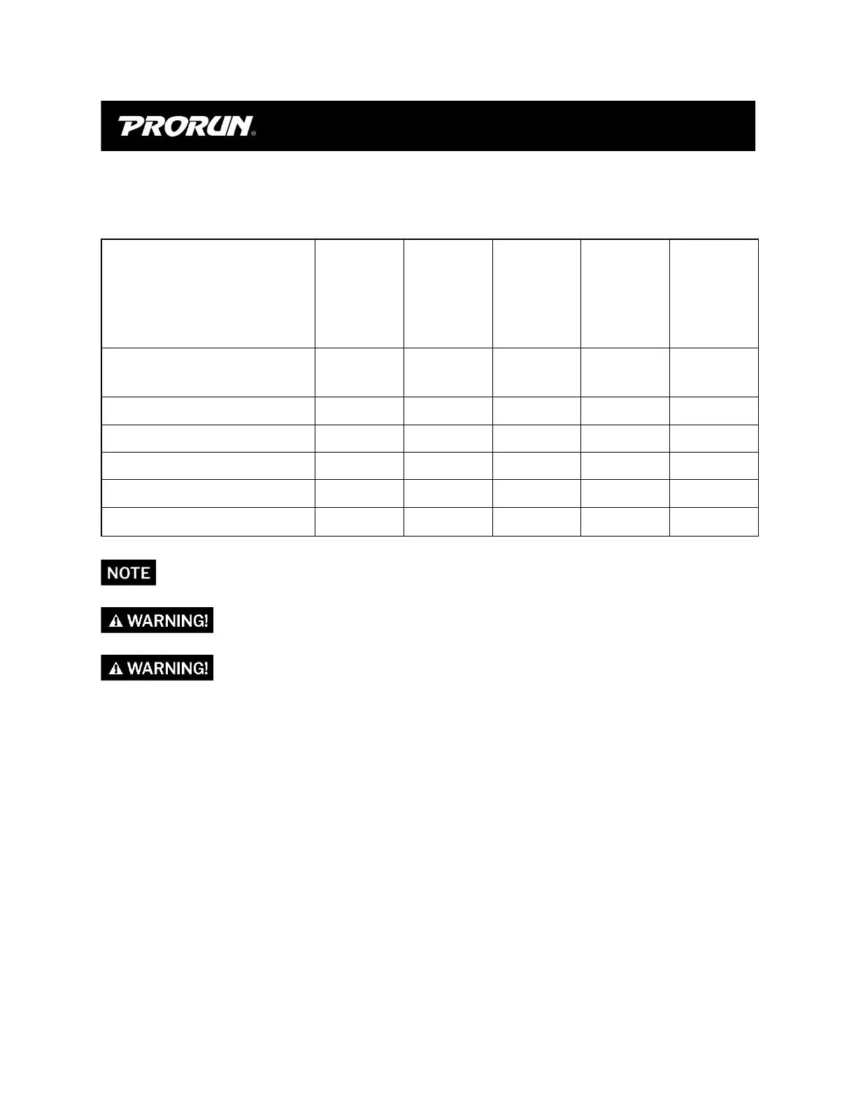 Contact PRORUN Customer Service for replacement parts. Use only