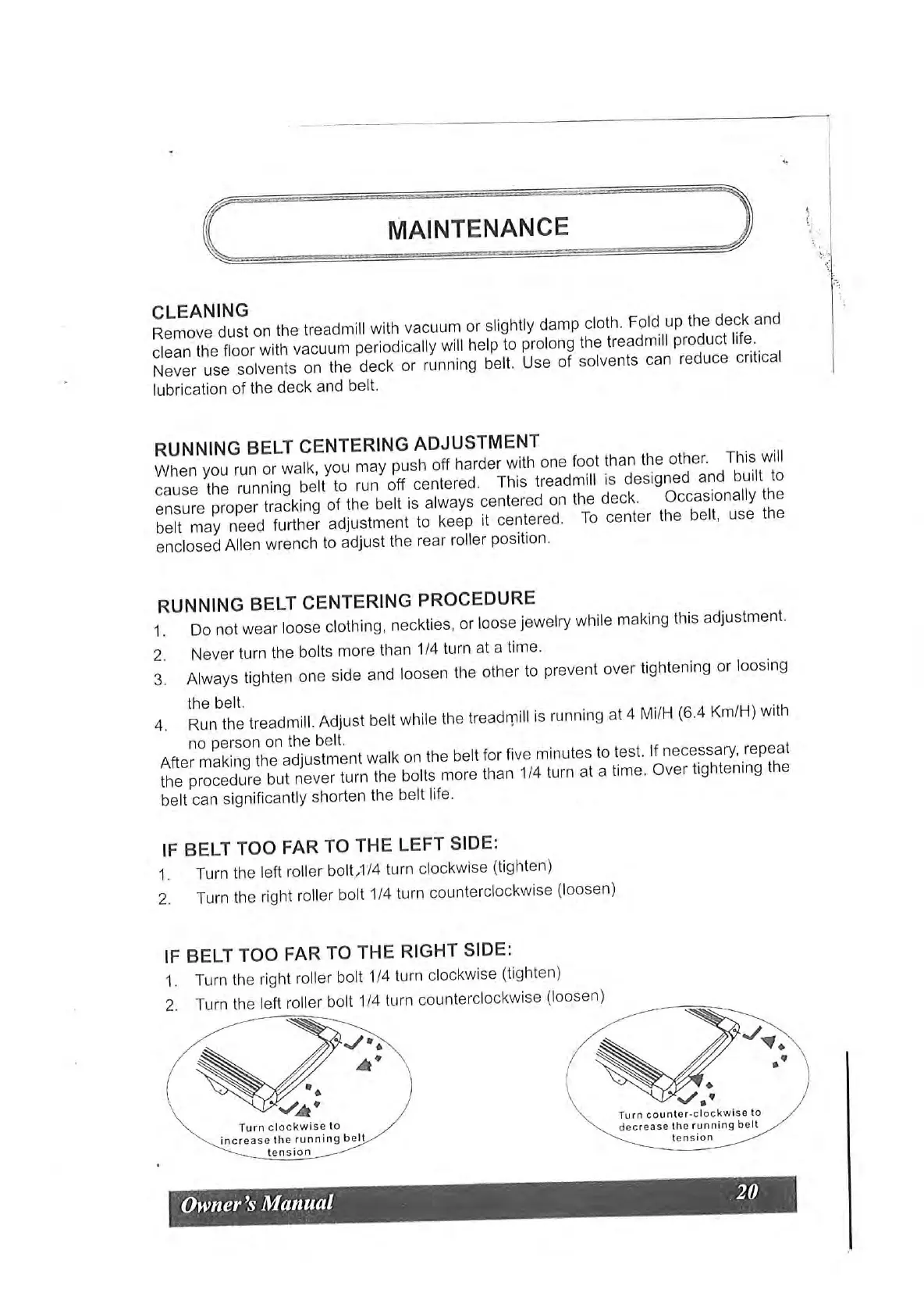 ProRunner 42XT - Maintenance; Cleaning and Belt Centering