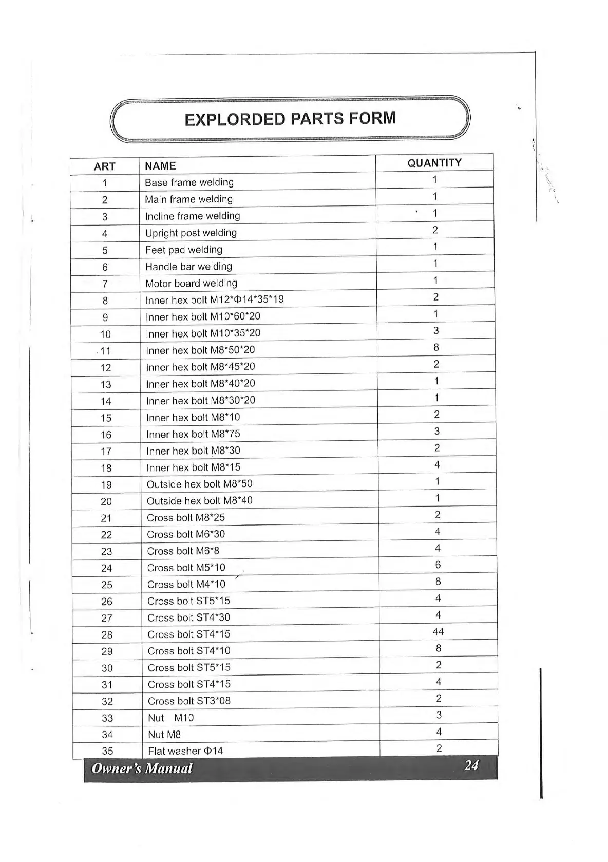 ProRunner 42XT - Explorded Parts Form