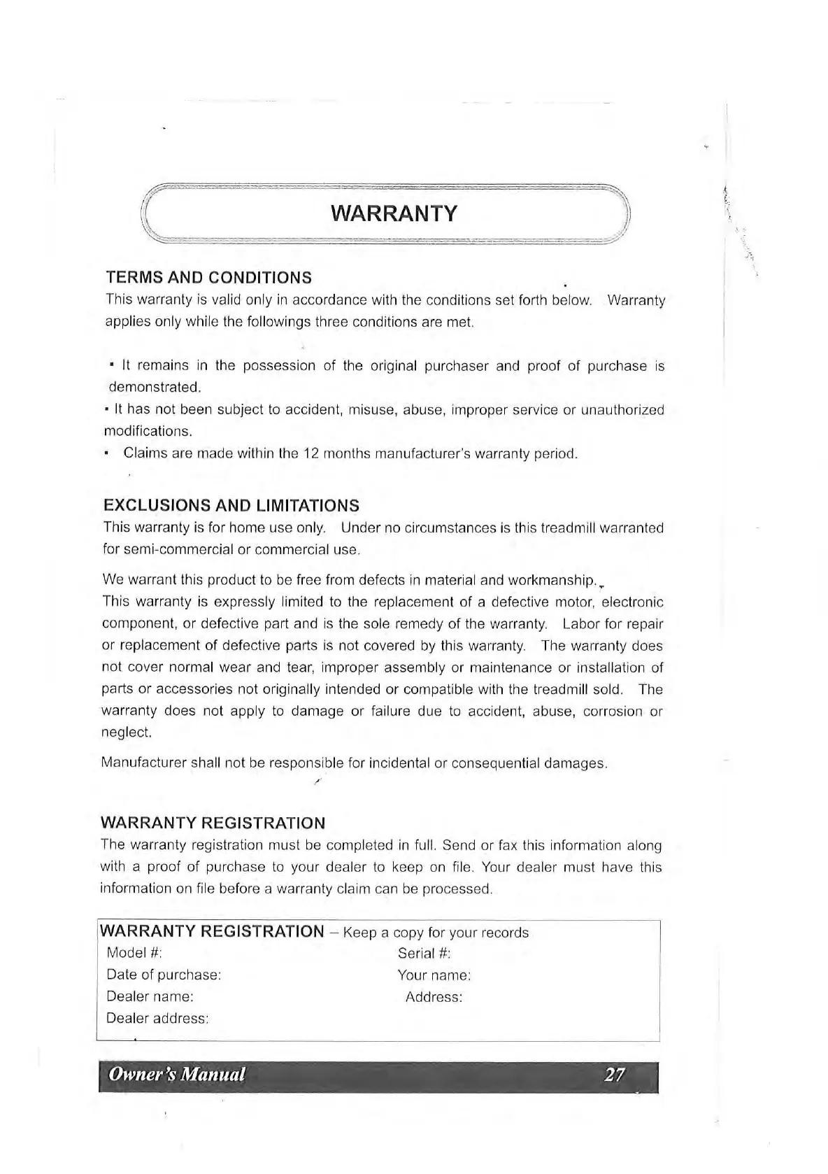ProRunner 42XT - Warranty; Warranty Terms and Conditions; Warranty Registration Process