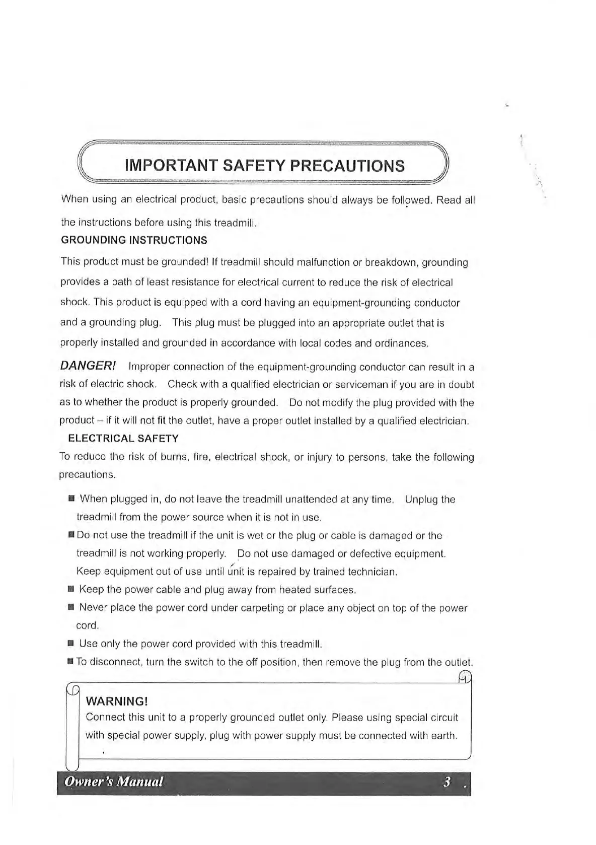 ProRunner 42XT - Important Safety Precautions; Grounding Instructions; Electrical Safety