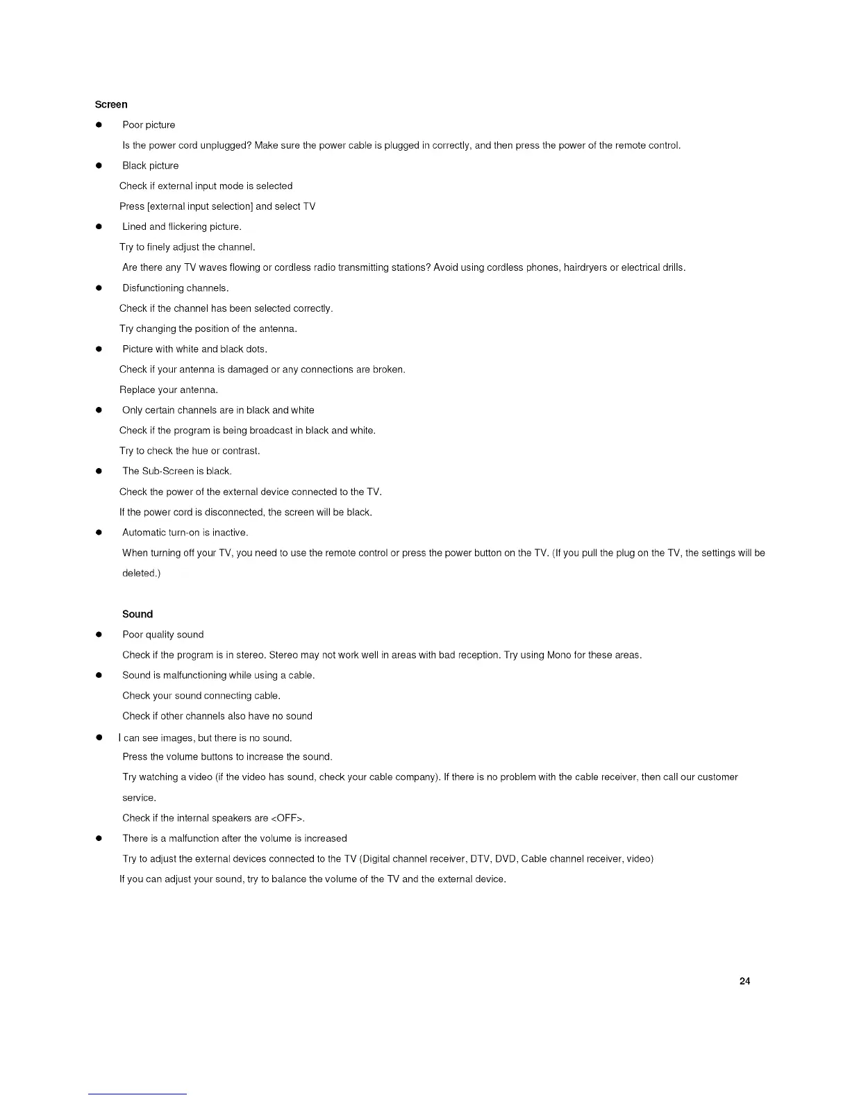Try to adjust the external devices connected to the TV (Digital channel receiver, DTV, DVD, Cable channel receiver, video)