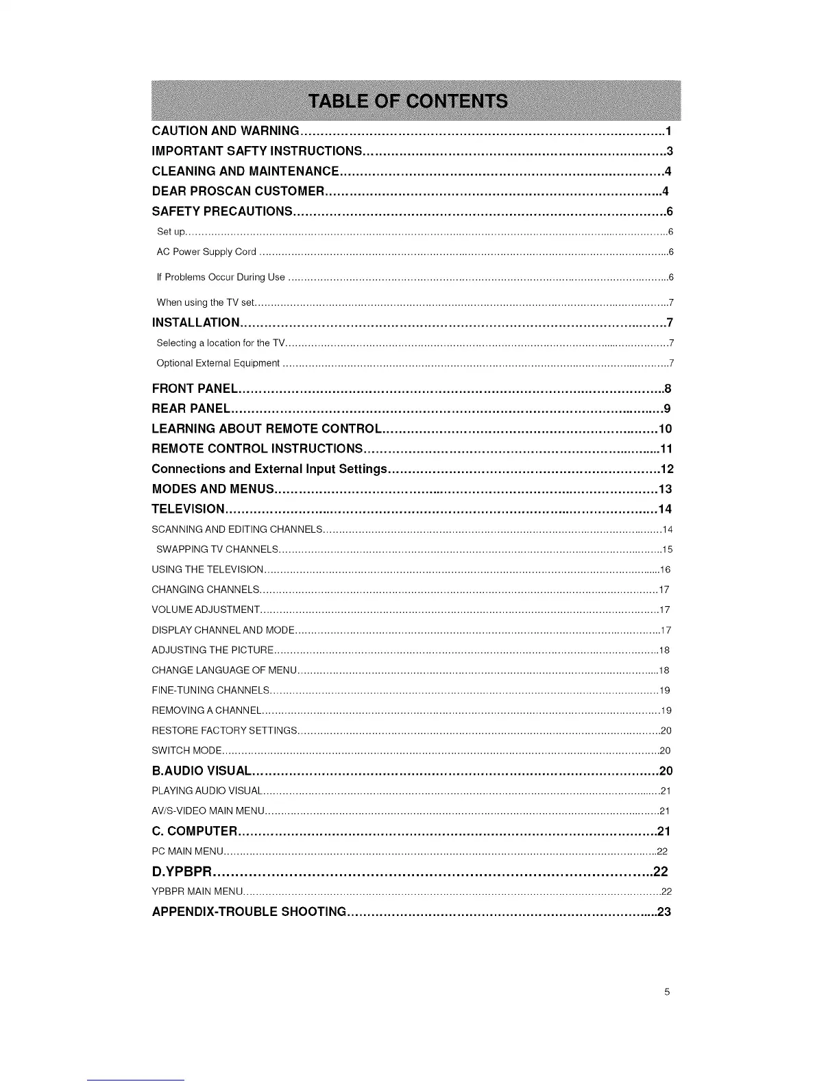 DEAR PROSCAN CUSTOMER ................................................................................... 4