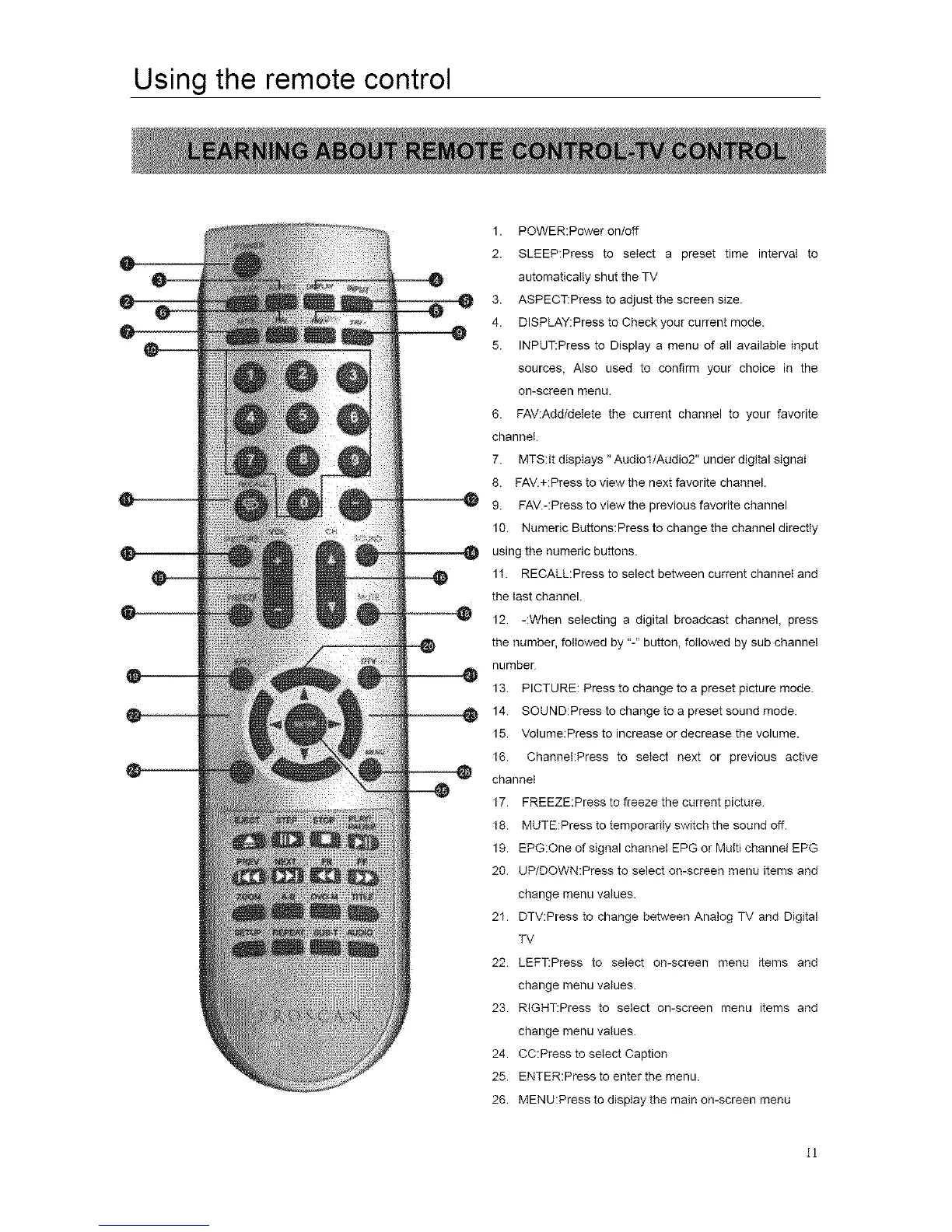 21. DTV:Press to change between Analog TV and Digital