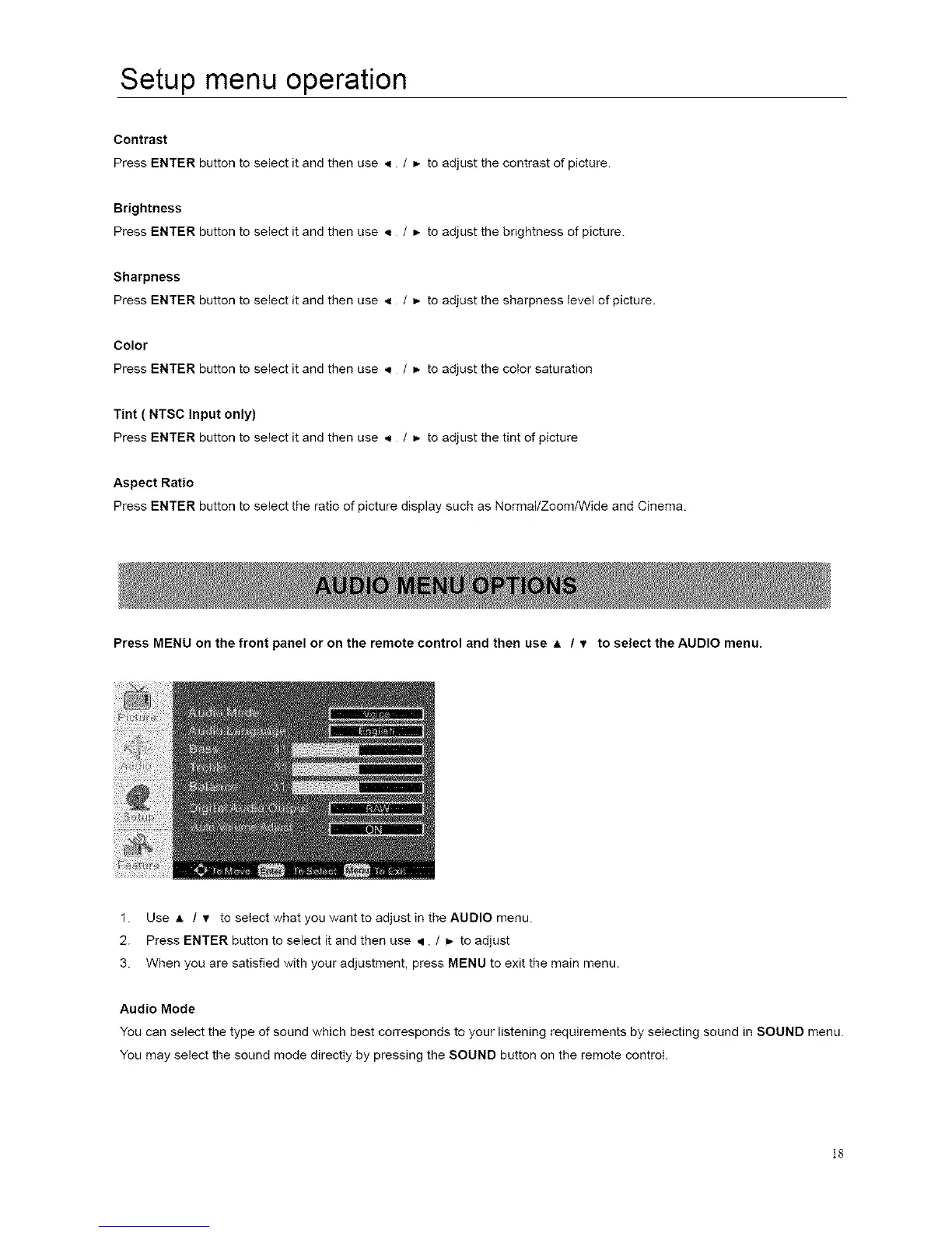 Press ENTER button to select it and then use _ / _- to adjust the contrast of picture.