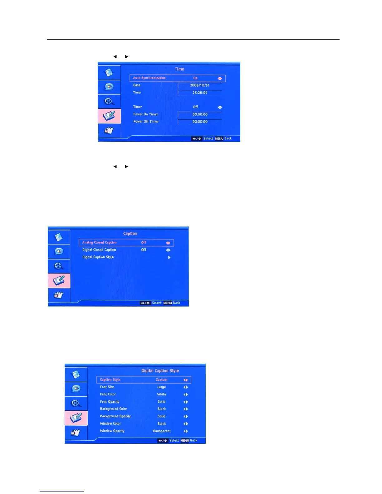 Select “Digital Caption Style”, press ENTER button to enter the submenu.