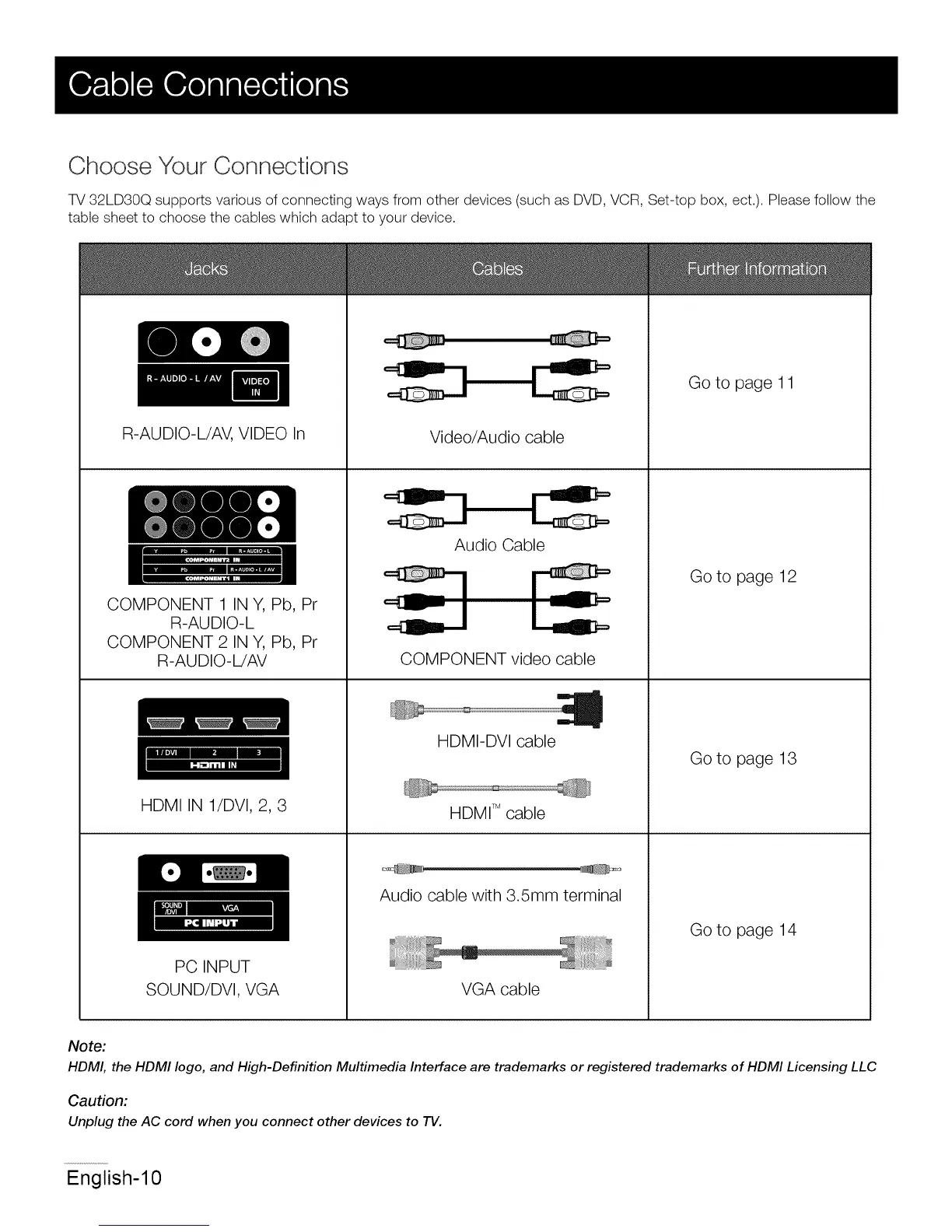 TV 32LD30Q supports various of connecting ways from other devices (such as DVD, VCR, Set-top box, ect.). Please follow the