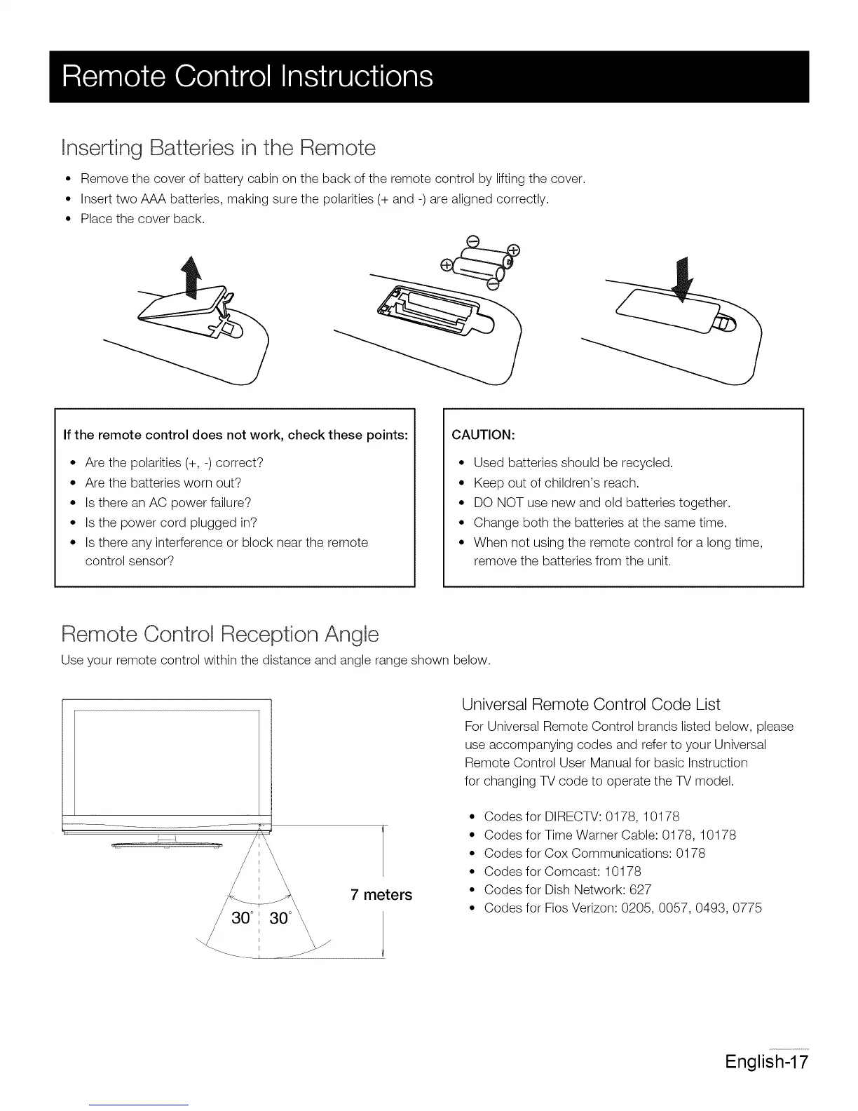 • Codes for DIRECTV: 0178 10178
