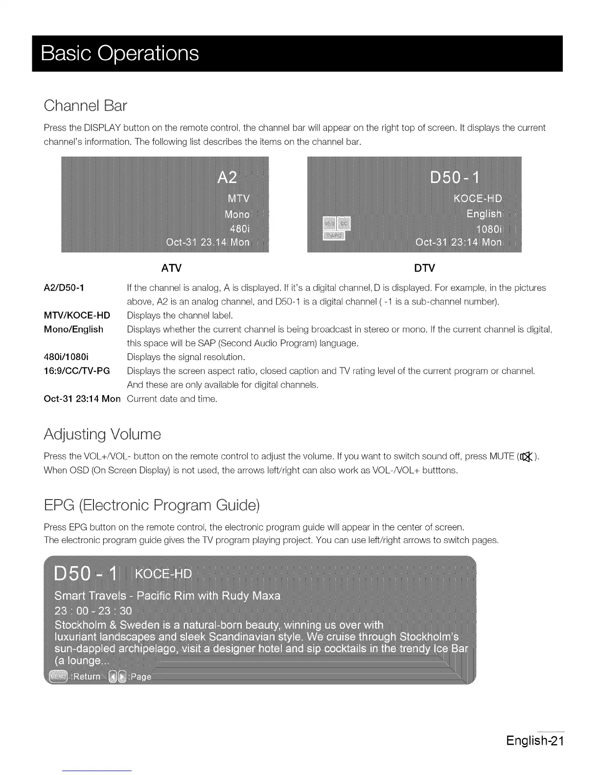 above, A2 is an analog channel, and D50-1 is a digital channel ( -1 is a sub-channel number).