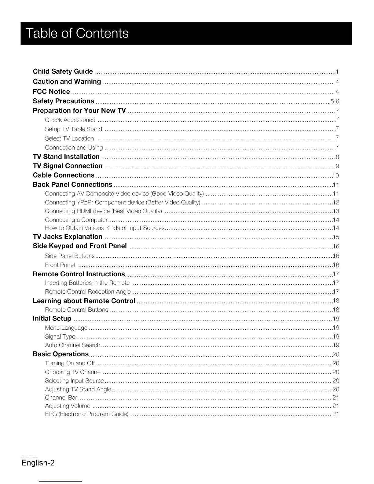 Preparation for Your New TV...................................................................................................................... 7