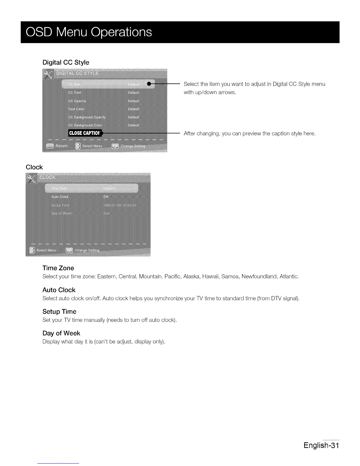 Select auto clock on/off. Auto clock helps you synchronize your TV time to standard time (from DTV signal).