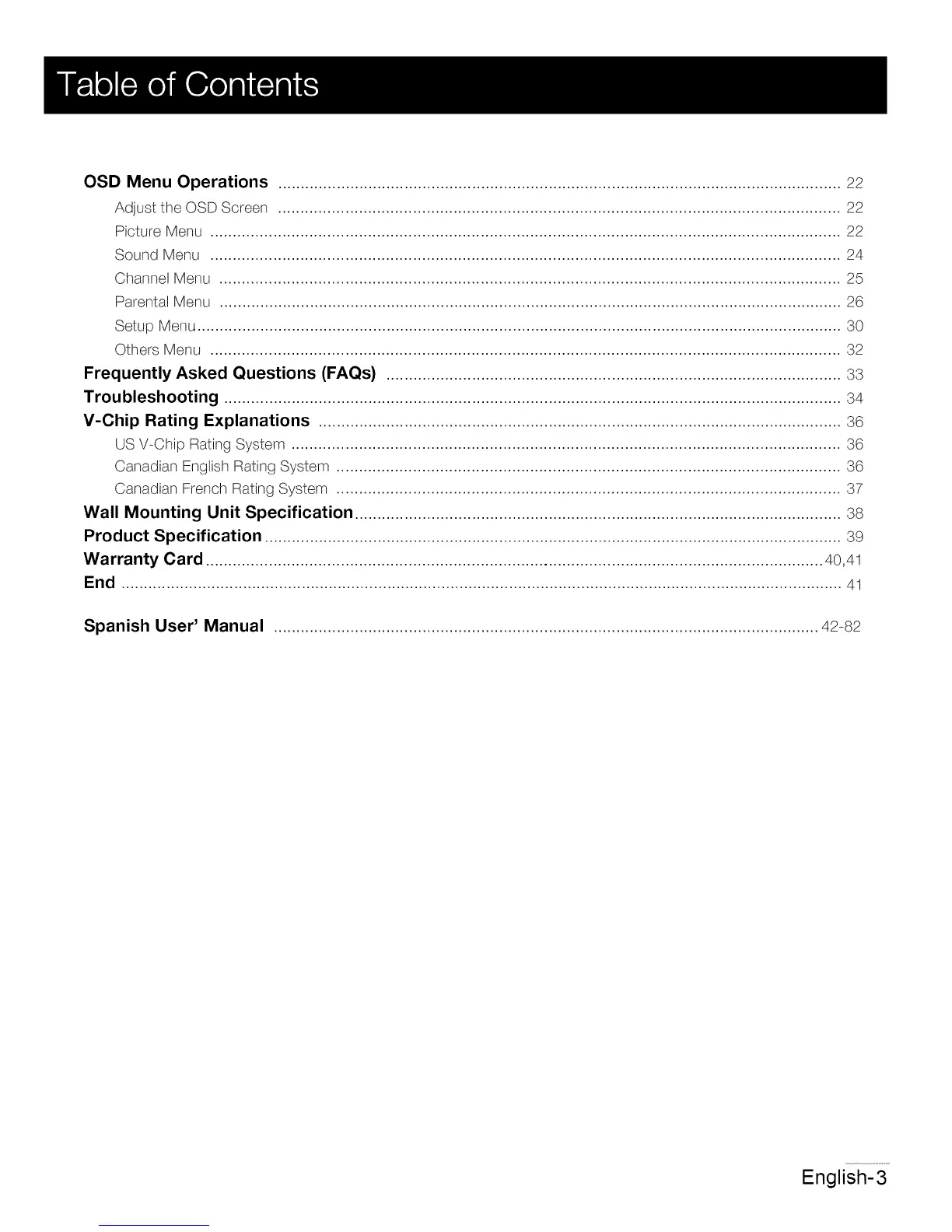 Wall Mounting Unit Specification ............................................................................................................ 38