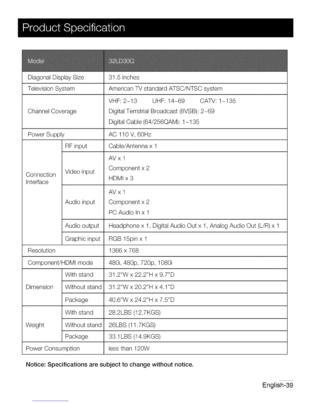 VHF: 2-13 UHF: 14-69 CATV: 1-135