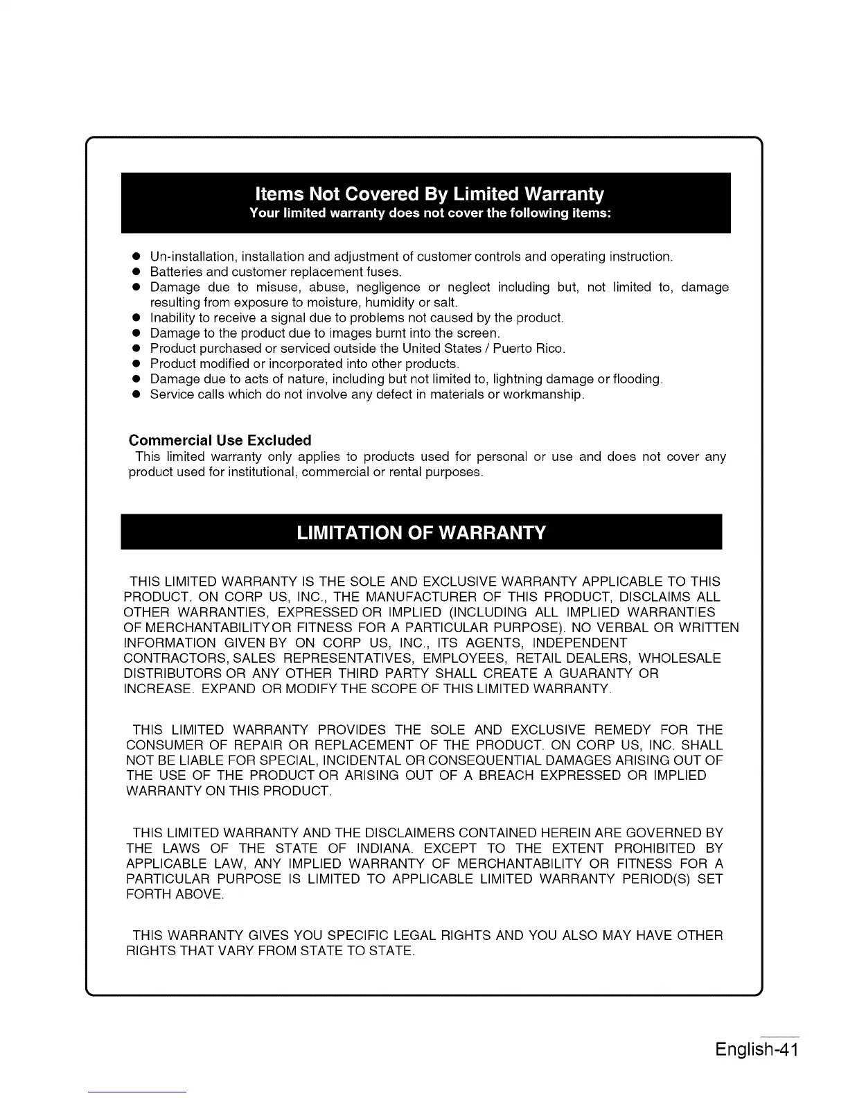 CONSUMER OF REPAIR OR REPLACEMENT OF THE PRODUCT. ON CORP US, INC. SHALL