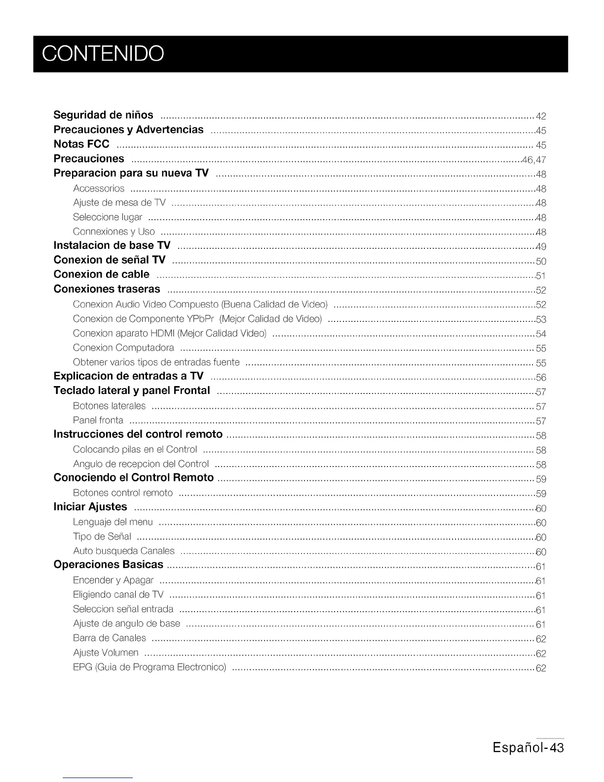 Conexion Audio Video Compuesto (Buena Calidad de Video) ....................................................................... 52