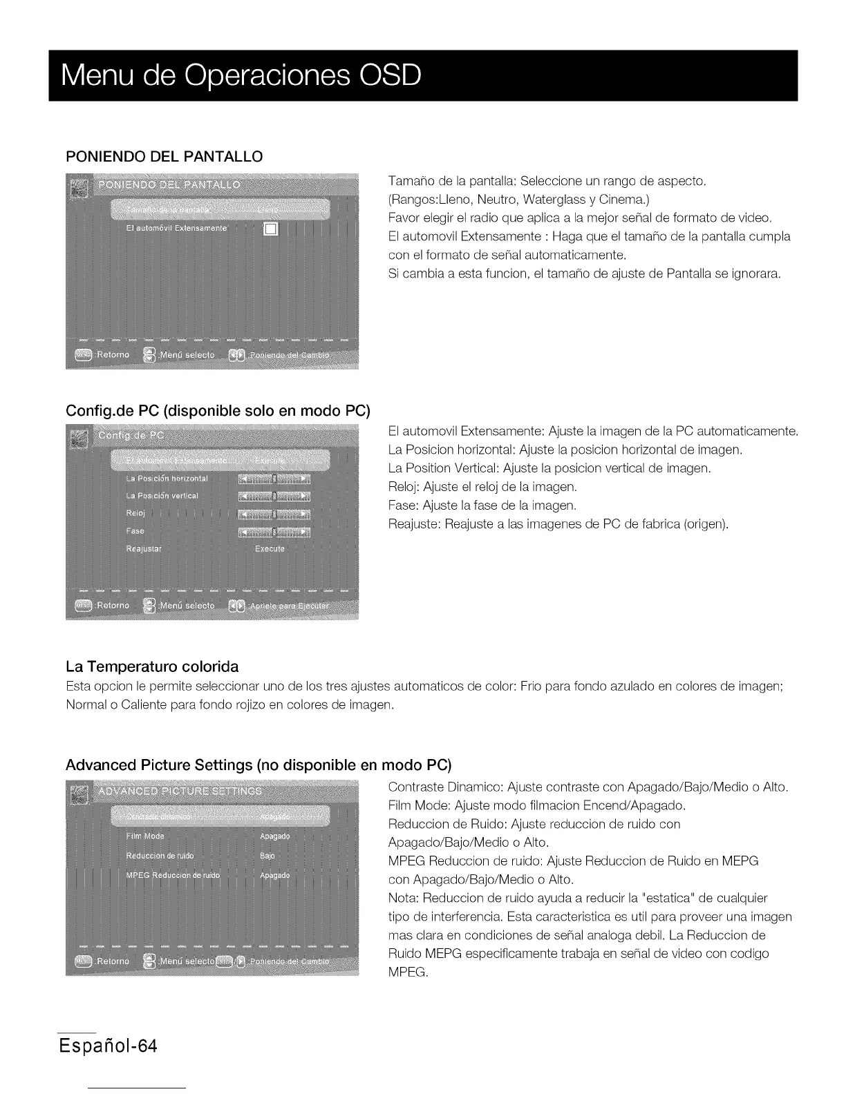 Advanced Picture Settings (no disponible en modo PC)