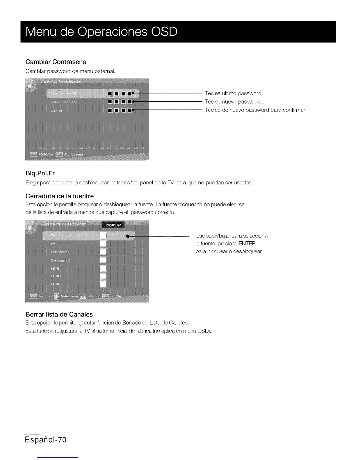 Elegir para bloquear o desbloquear botones 'del panel de la TV para que no puedan ser usados.