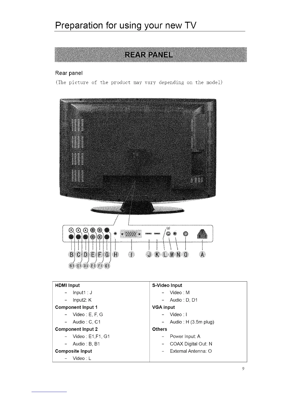 ProScan 37LB30QD - REAR PANEL; CONNECTIONS AND EXTERNAL INPUT SETTINGS