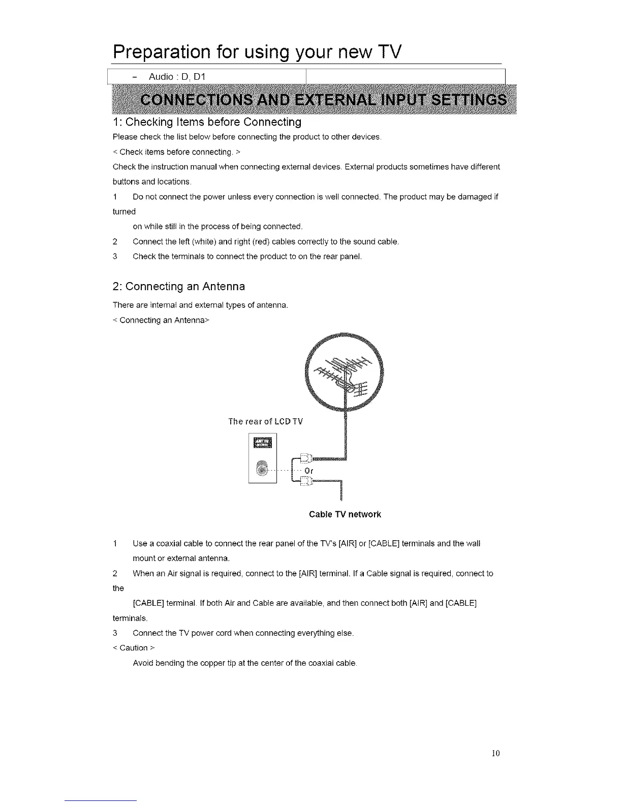 [CABLE] terminal If both Air and Cable are available, and then connect both lAIR] and [CABLE]