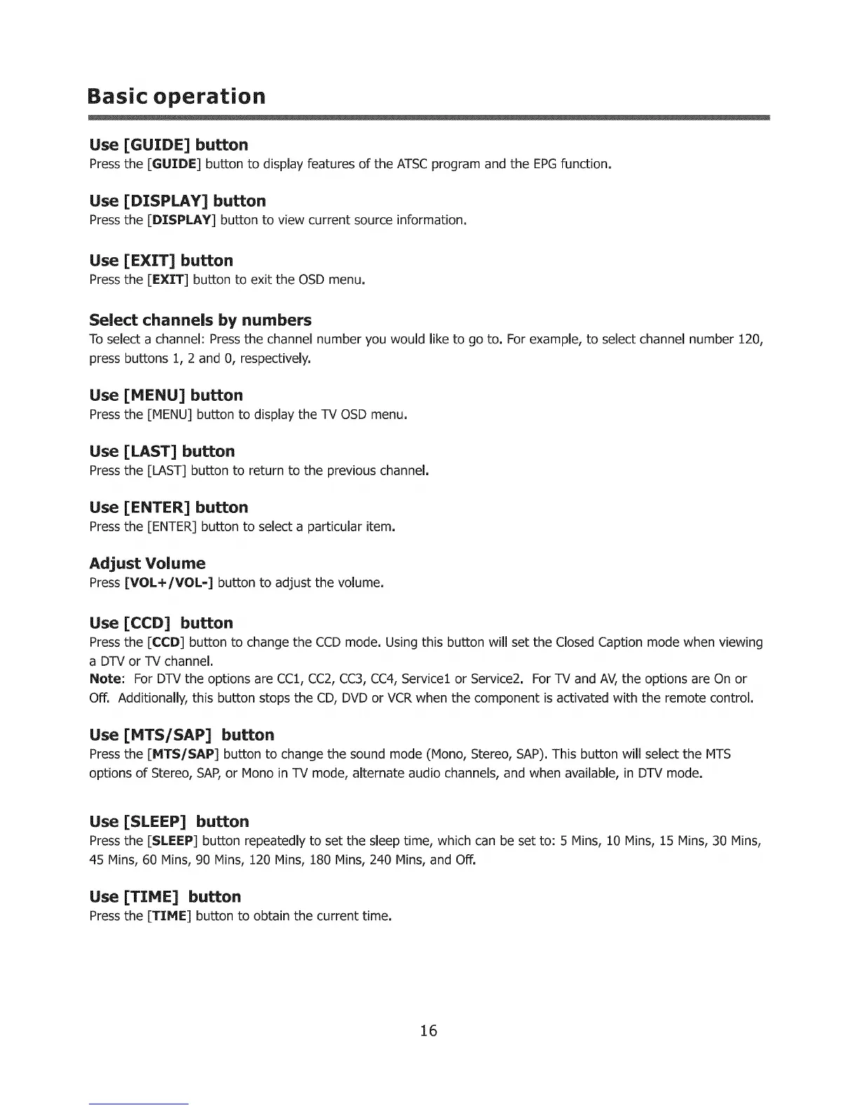 Press the [CCD] button to change the CCD mode. Using this button will set the Closed Caption mode when viewing