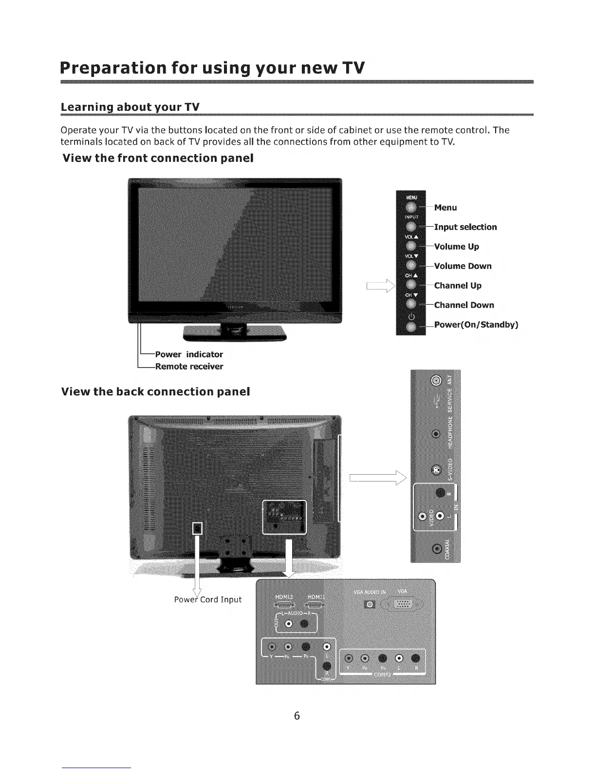 Operate your TV via the buttons located on the front or side of cabinet or use the remote control. The