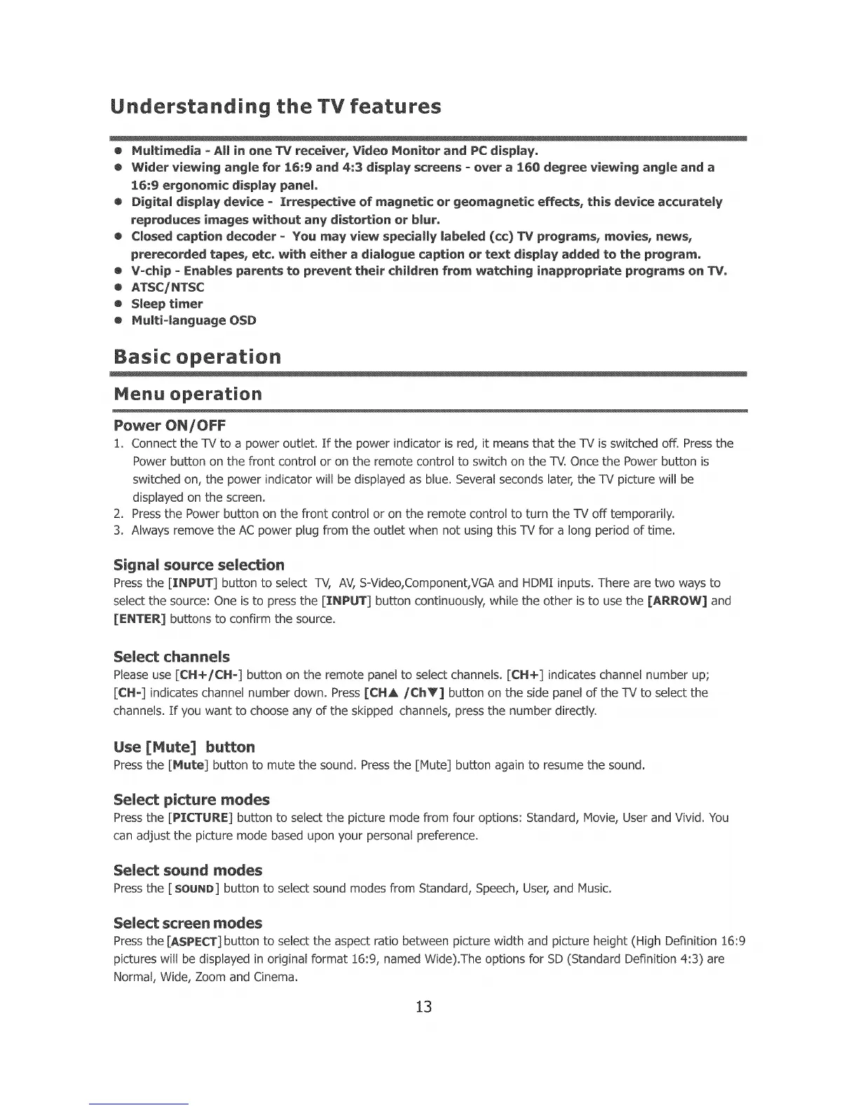 • Closed caption decoder = You may view specially labeUed (cc) TV programs, movies, news,